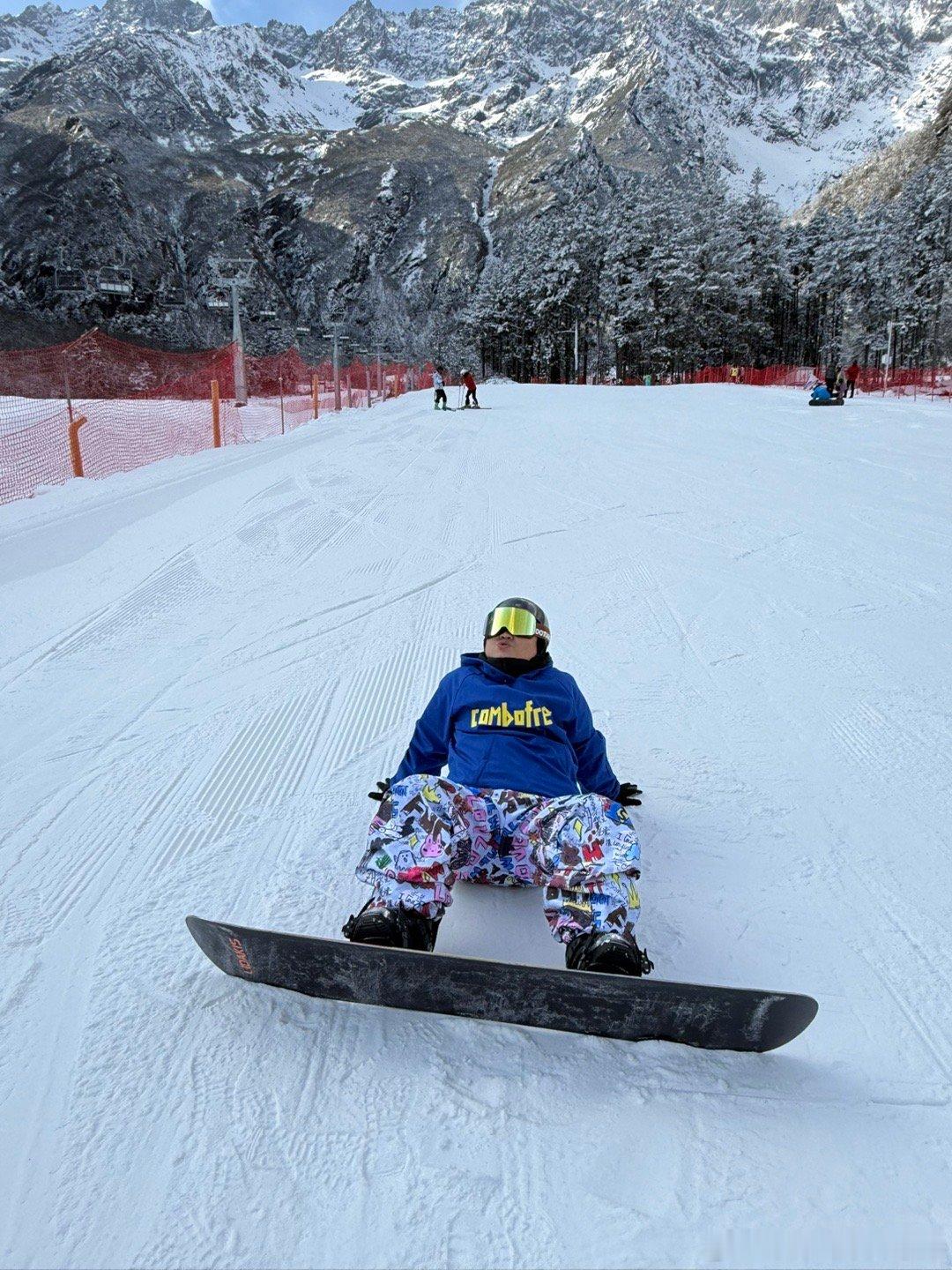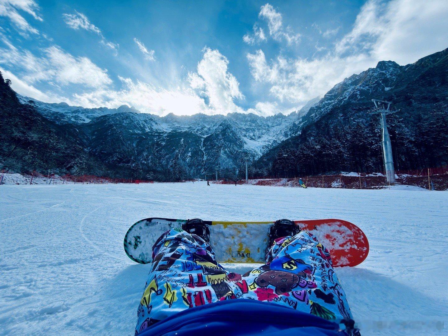 羌人谷还得非周末来,人很少,体验很棒!记录下第一次滑单板,也没怎么摔,教练说我是