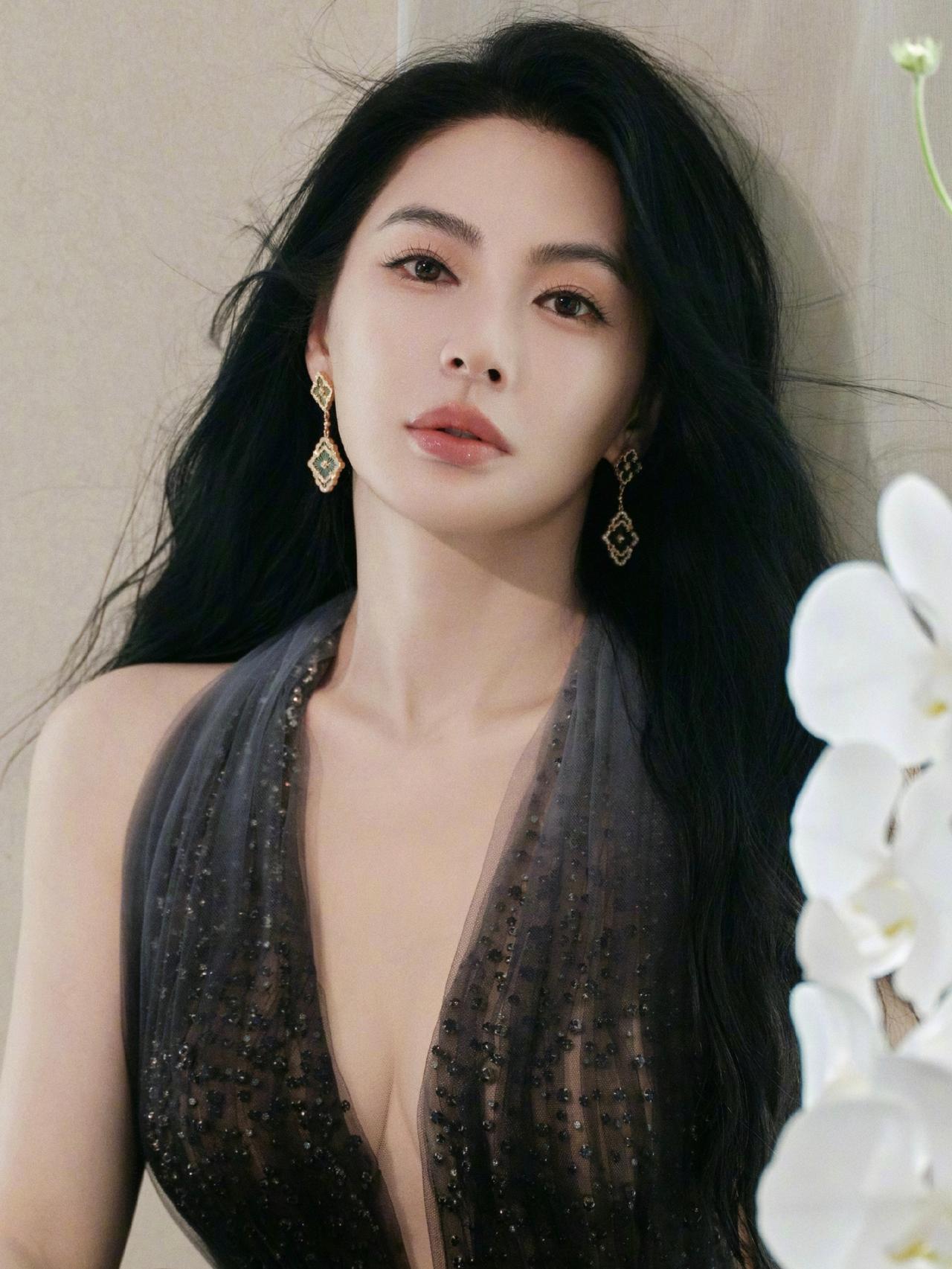 优雅黑纱裙,花束相伴,尽显高贵气质张雨绮!