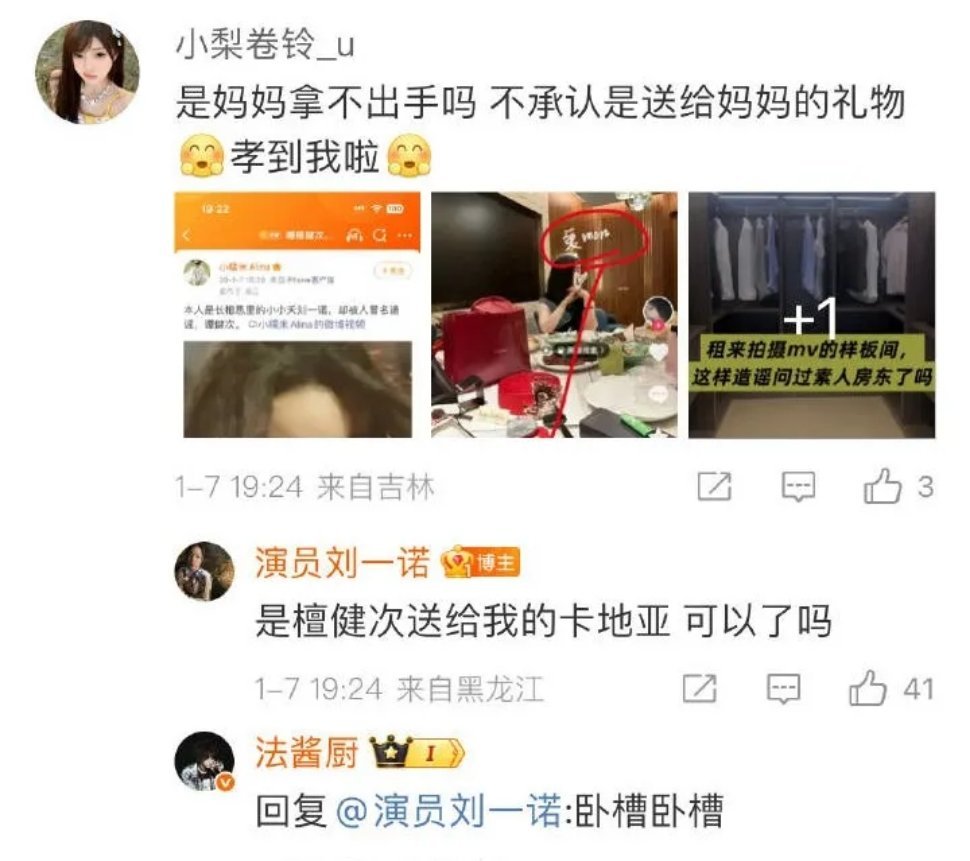 刘一诺被质疑后带大名了!提醒不理智粉丝别来沾边,直言本意没想公开,很多其他东西没发是不想给他造成困扰,如果还有人说她这那恋爱内容会全部公开刘一诺回应完就删了,可惜速度没有网友快,网友现在很期待刘一诺把恋爱内容公开还有人说刘一诺此番是为了宣传她的短剧如果只是为了宣传短剧,那还好说,她心里有数,如果单纯是被司晓迪刺激,又被质疑,那这事大结束就是个未知数了! 檀健次