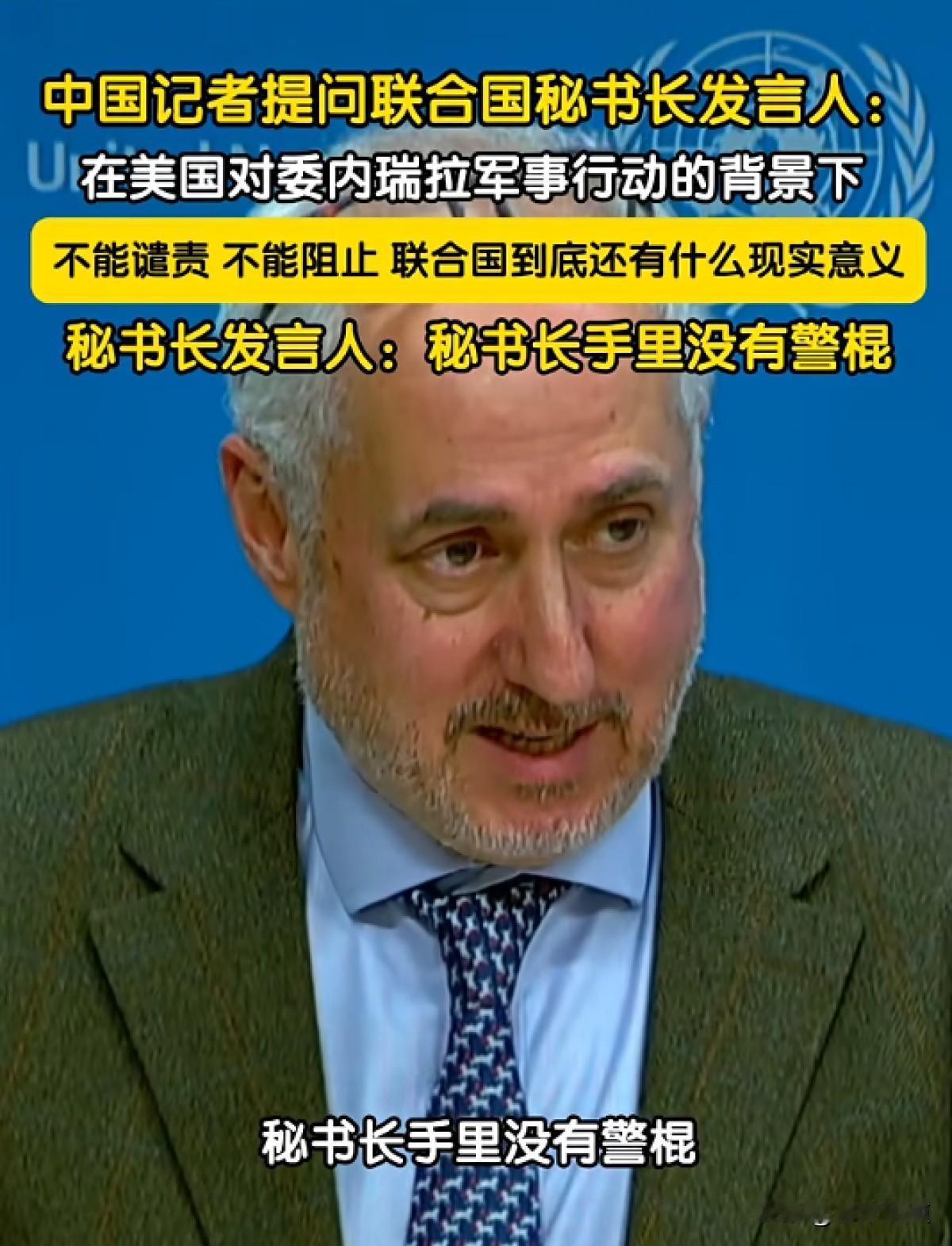 联合国还剩几分尊严?中国记者一问刺破国际幻象 那天的会场静得可怕,连翻纸的声音都像打雷。美国代表把手举起来那一刻,其实所有人都知道了结局——又是一次否决。安理会第9526次会议,2026年1月5日,本来是要讨论委内瑞拉乱局的,结果中国代表孙磊一张嘴,直接把火药味顶到了天花板。他不绕弯子,点名美国踩了联合国宪章四条红线:干涉内政、破坏主权、阻挠和平、动武威胁。话说得硬,十三个国家当场点头,支持票眼看就要成形。可那张否决牌一甩出来,一切归零。 会后记者围上去问秘书长发言人迪雅里克,这事儿还能不能管?他苦笑一下,说了句后来刷屏的话:“我们没警棍打美国的头。”现场没人接话,空气凝住几秒。就在这时候,一个中国记者站起来,声音不大但字字清晰:“那联合国还有什么意义?”这句话像是戳破了气球,所有伪装的体面哗啦一下掉了下来。 你细想这事,哪是今天才出的问题?早就不对劲了。规则早就变了味。联合国宪章本来说好大家平等,结果现在成了强者的遮羞布。美国那一票否决权,用得跟呼吸一样自然。2024年7月,加沙打得血流成河,联合国提议人道停火,美国直接否了。之后轰炸升级,两千一百多条命没了。2025年3月,叙利亚石油被美军开着卡车一车车往外拉,中方和叙方联合提追责案,还是美国,一票否决。叙利亚自己算过账,三年损失三百二十亿美元,够全国重建两轮了。 再到这次委内瑞拉,几乎一模一样的剧本。美国支持反对派,冻结资产,掐石油命脉,暗中策动政变。马杜罗政权差点倒台,中国站出来喊了一声,安理会刚要启动调查,又是那个熟悉的手势——否决。一次两次还能说是立场不同,次次如此,谁还信这套机制? 更讽刺的是钱的问题。美国欠着联合国九点六七亿美元会费,占全球欠款六成。这不是忘了交,是故意拖着。结果呢?联合国预算砍了15%,一千八百多名员工走人,维和任务缩水,人道项目直接停摆。委内瑞拉原定一季度的援助物资少了快四成。人道协调厅的数据摆在那里:七百九十万人活在饥荒边缘,儿童营养不良率17%,有些村子,一家人靠木薯粉拌泥土充饥,叫“饱腹饭”——听着心酸吧?可美国那边,2025年军售总额冲到一千八百亿,刚果(金)邻国买了六亿军火,而联合国在当地刚撤了维和部队。两周后,叛军屠村,二十万人逃难。这笔账怎么算? 道德底线也在塌。2011年利比亚禁飞区决议,打着“保护平民”旗号,结果北约炸了八个月,国家炸废了。BBC 2017年拍到,境内出现奴隶市场,五万多人被当货物买卖。这事到现在没人认错。如今委内瑞拉又是“人道危机”起步,接着制裁、干预,等乱子一出就说要“国际介入”——这套路熟不熟?简直就是翻版。 但中国这次没只动嘴。会议一结束,立马发起联大紧急特别会议,搬出1950年“团结为了和平”机制,这招原本是美国当年为对付苏联设计的,现在被我们拿来反制。投票结果让全世界盯着看。红十字会48小时内空运三百吨粮食药品到委内瑞拉,外交部甩出“全球应急基金”,首期五千万美元投进去。最狠的是那份《美国违反国际法白皮书》,一百三十二起案例,从非法开战到秘密制裁,一条条列得清清楚楚。24小时阅读量破七亿,欧美社交媒体上讨论炸了锅。 小国纷纷点头,非洲拉美国家明里暗里支持。德国外长上电视说:“如果否决权成了挡箭牌,联合国就没了灵魂。”这话没错,但光说有啥用?制度病了,不动刀子不会好。 那盏灯还亮着,但开关在谁手里,我们都清楚。秘书长还能发言,可每句话都得掂量。记者还能问问题,但答案早就写好了。真正的秩序不会消失,只会换地方生长。