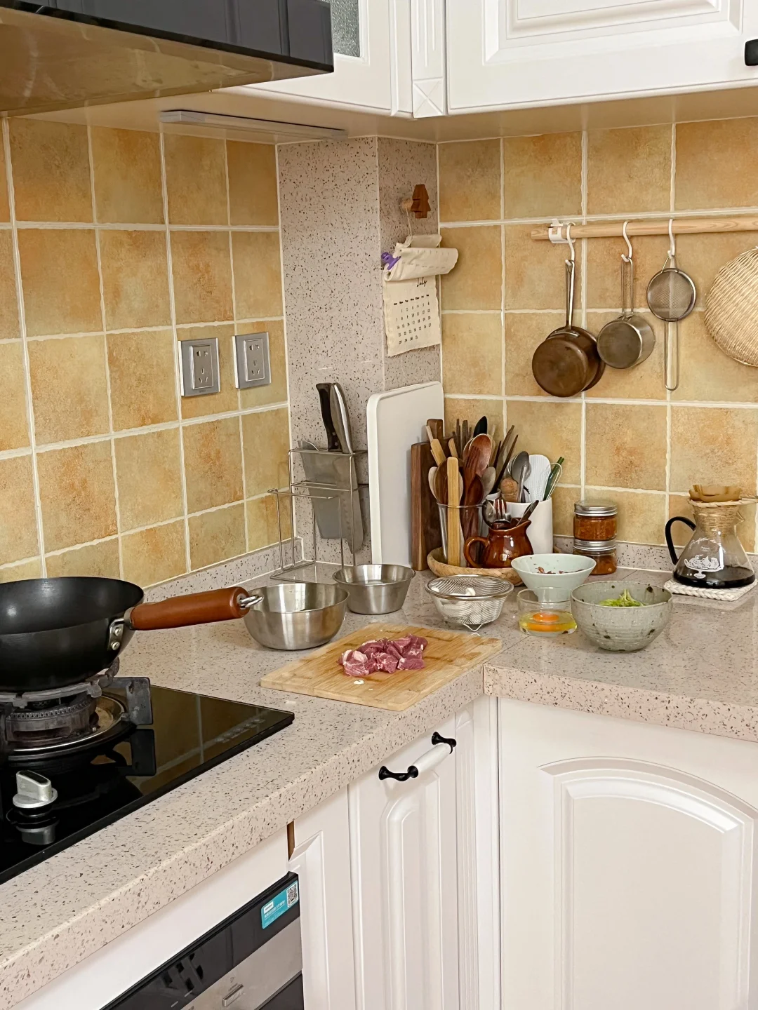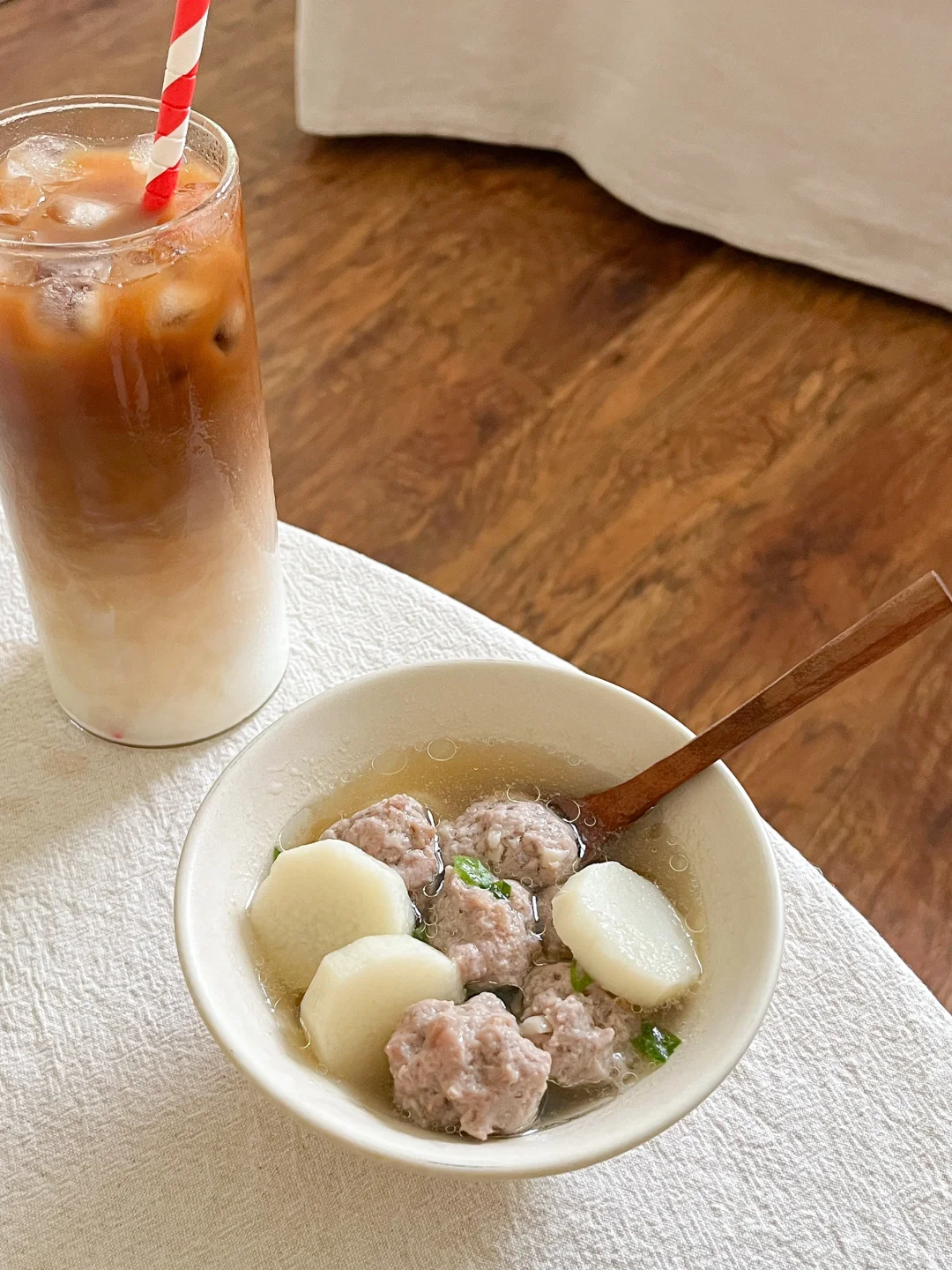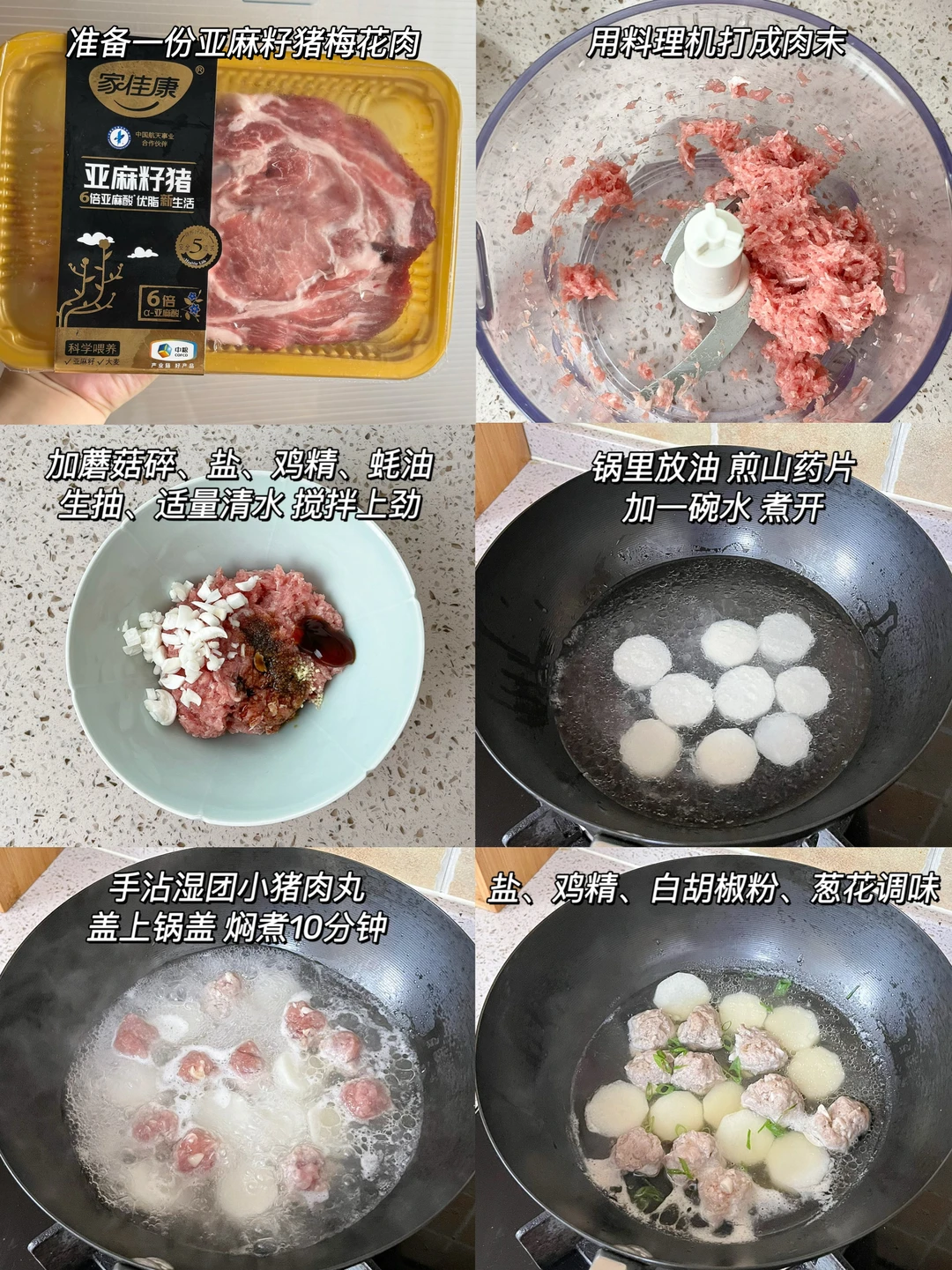 剩下的半块猪肉打碎做成小肉丸 烧山药汤