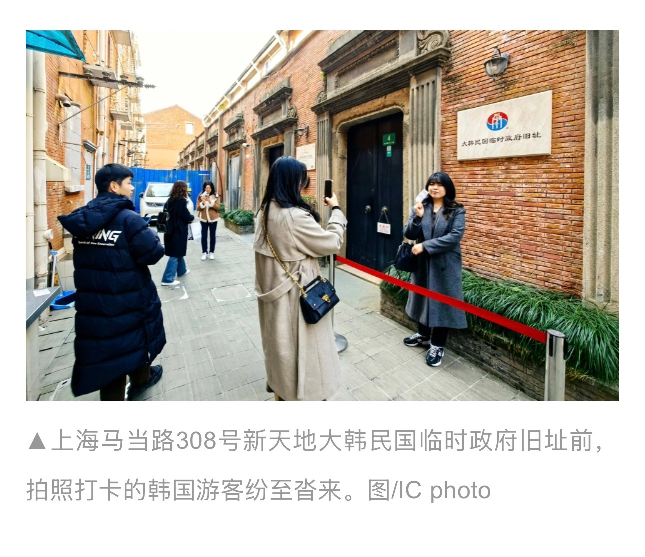 每日精选 【李在明打卡这个上海旧址,事关韩国法统起源】 (新京报 2026-01-07 17:14 ) 『 把参访大韩民国上海临时政府列为访华的重要一站,也再一次表明李在明对两国共同抗日的历史的认可。 』 据新华社报道,1月4日至7日,韩国总统李在明对中国进行为期4天的国事访问。这是2026年伊始,中国迎来的第一位外国国家元首,也是韩国总统时隔近9年再次对中国进行国事访问。 结束在北京三天的访问行程后,韩国总统李在明6日前往上海。7日下午,他在上海出席大韩民国临时政府旧址100周年纪念活动。 李在明此次中国之行,把参访大韩民国上海临时政府列为访华的重要一站,也再一次表明李在明对两国共同抗日的历史的认可。 * 详情请点击链接,收听收看来自的报道:李在明打卡这个上海旧址,事关韩国法统起源 | 京酿馆