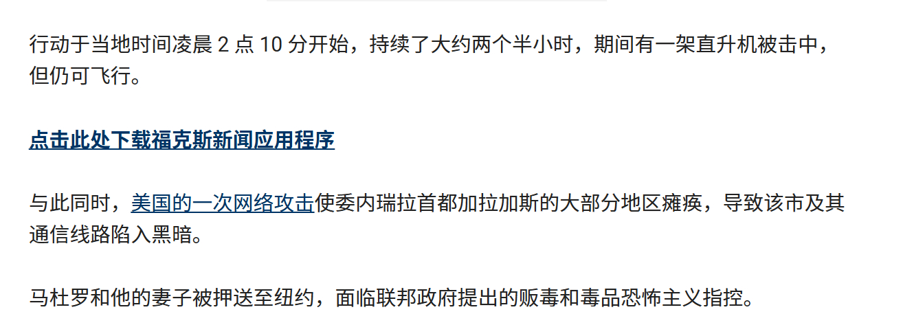 🔻福克斯新闻报道,美军在突袭委内瑞拉的“绝对决心”行动中,有7名美军受伤,其中5人接受治疗后无碍,2人仍在医院治疗。🔻特朗普自己也亲口承认,有1架直升机在行动中被“重伤”(可能被便携式防空导弹击中),不过仍然坚持成功撤离了战场。🔻委内瑞拉方,马杜罗的总统卫队(大部分是古巴人)有32名古巴官兵被宣布阵亡,委内瑞拉官兵也有超过20人阵亡,受伤上百人。🔻特朗普真得给西科斯基和波音公司磕一个,黑鹰直升机和支奴干直升机的可靠性,抗击打能力都是相当好的,要不然这次真被打得哪怕1架“黑鹰坠落”,特朗普的赢学就彻底完了,可以说是特朗普堵上了自己前途的一次冒险行动。🔻不幸的是,特朗普这次赌赢了。委内瑞拉发布讣告热点现场海外新鲜事