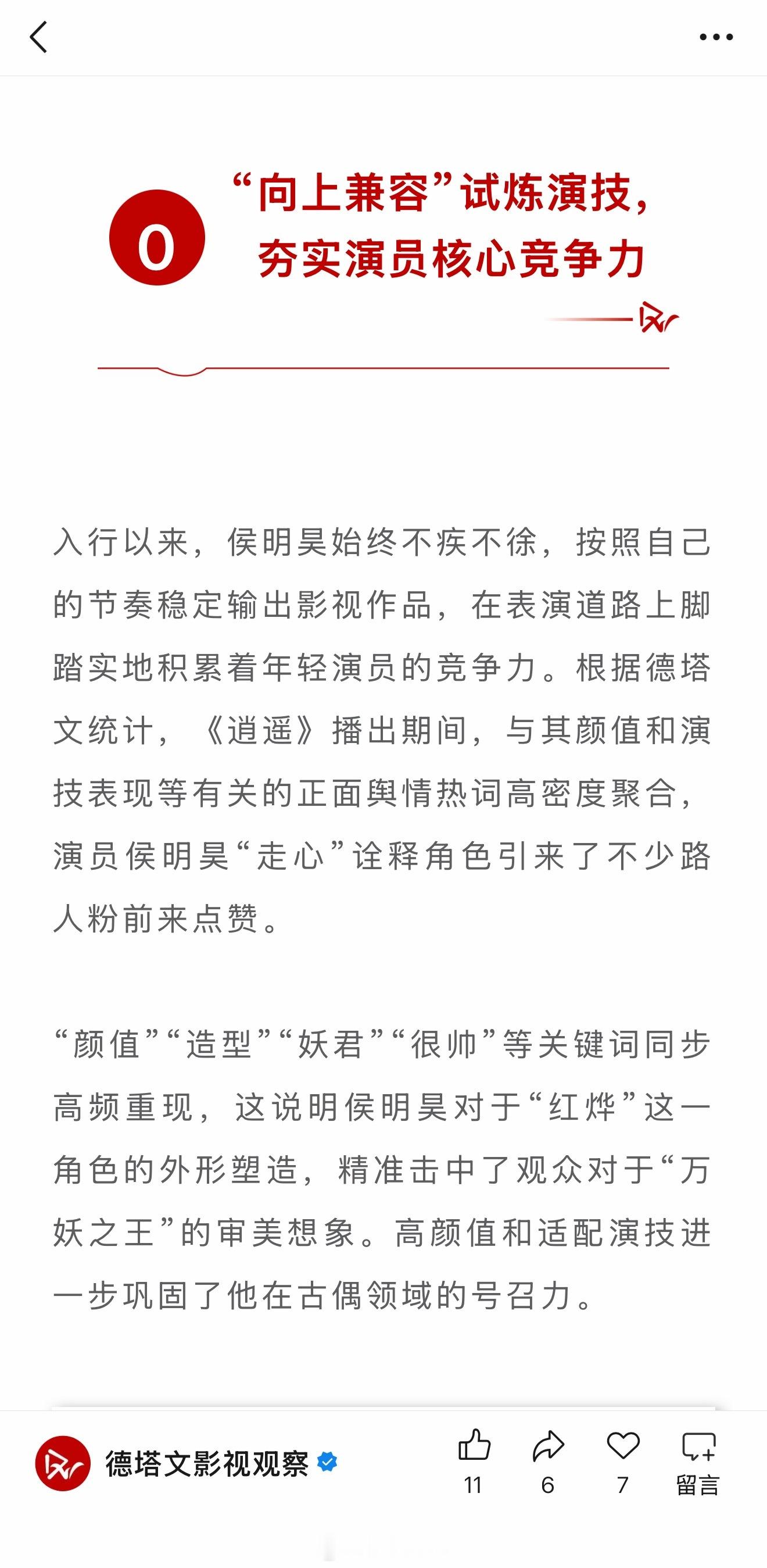 德塔文发文,95实力小生侯明昊“向上兼容”,落地演绎《逍遥》三世情缘 三世情缘契合式演技,侯明昊有效传递“逍遥”真谛“向上兼容”试炼演技,夯实演员核心竞争力