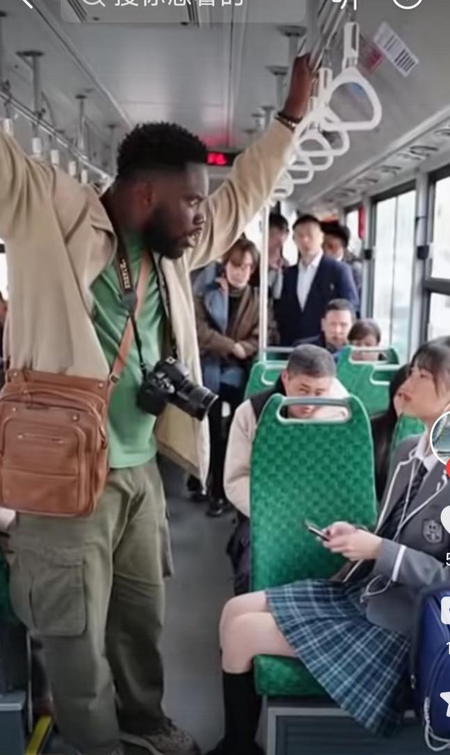 公交上,人挤人。 一黑人不爽了,大声夹恶令一姑娘给他让座。 姑娘自然不让。 黑人