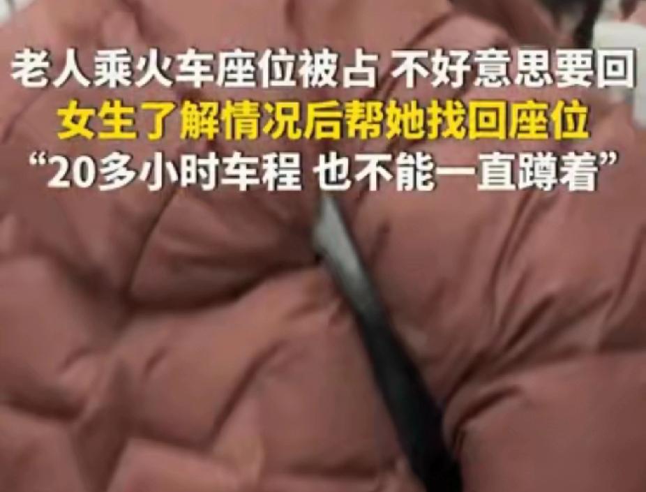 辽宁,一20岁女生乘坐火车时,发现一位老奶奶蹲在过道里,经过了解得知,老奶奶的座位被占了,自己不好意思要回来。女生带着老奶奶帮忙要回座位,老奶奶感激不已,网友:还是老一辈人纯朴,连处理事情的方式都那么纯朴! 女生小姚本是准备乘坐高铁去学校,因为没有买到票转而乘坐了火车,小姚买的是无座,火车上过道里挤满了人,小姚只好找一空地坐在地上。 而就在小姚的前面,蹲着一位老奶奶,一开始小姚以为老奶奶是坐短途,想着奶奶这么大的年纪哪能经得起这样折腾。 小姚关心的问老奶奶:“您坐到哪个地方下车奶奶?” 奶奶笑着说:“到上海。” “到上海?辽宁到上海可是要20多个小时呢,您咋没买个坐票呢?”小姚不可思议的问道。 “我有座位,让别人坐了,不好意思要回来。”奶奶微笑着回答。 小姚更不敢相信了,对着奶奶说道:“奶奶,你知不道,到上海要20多个小时啊,您这么大年纪了,一直蹲在地上肯定不是个事儿,这样,我领着您去帮您把座位要回来” 正好,小姚和奶奶刚要起身,乘警过来开始查票,小姚这才得知奶奶确实是有座位的。 火车上多少有些颠簸,小姚搀扶着奶奶,拿着奶奶的火车票开始帮奶奶找座位。 其实,小姚还是很担心,担心遇到那种蛮不讲理的人,不过,小姚已经准备好了与人争辩的勇气。 万万没想到,当小姚领着奶奶来到座位前时,向坐在座位上的乘客说明了情况,这位乘客也很不好意思的说:“我以为没人坐才一直坐这儿的,真是不好意思!” “奶奶她不好意思跟你要回来座位,一直蹲在过道里的,我看奶奶年纪大了,怕她身体吃不消,这才知道奶奶是有座位的”小姚也解释说道。 奶奶坐回座位上后,一直在感谢小姚。 老一辈的人就是这样,她们太纯朴了,包括处理事情也是那么的纯朴。不过幸好遇见了善良的小姚,不然,老奶奶的身体哪能承受得了呢?