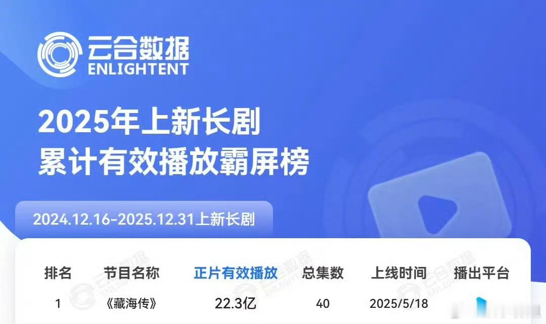 优酷发文藏海传2025剧王诞生优酷发文又双叒叕发战报了:《藏海传》包揽三榜年冠