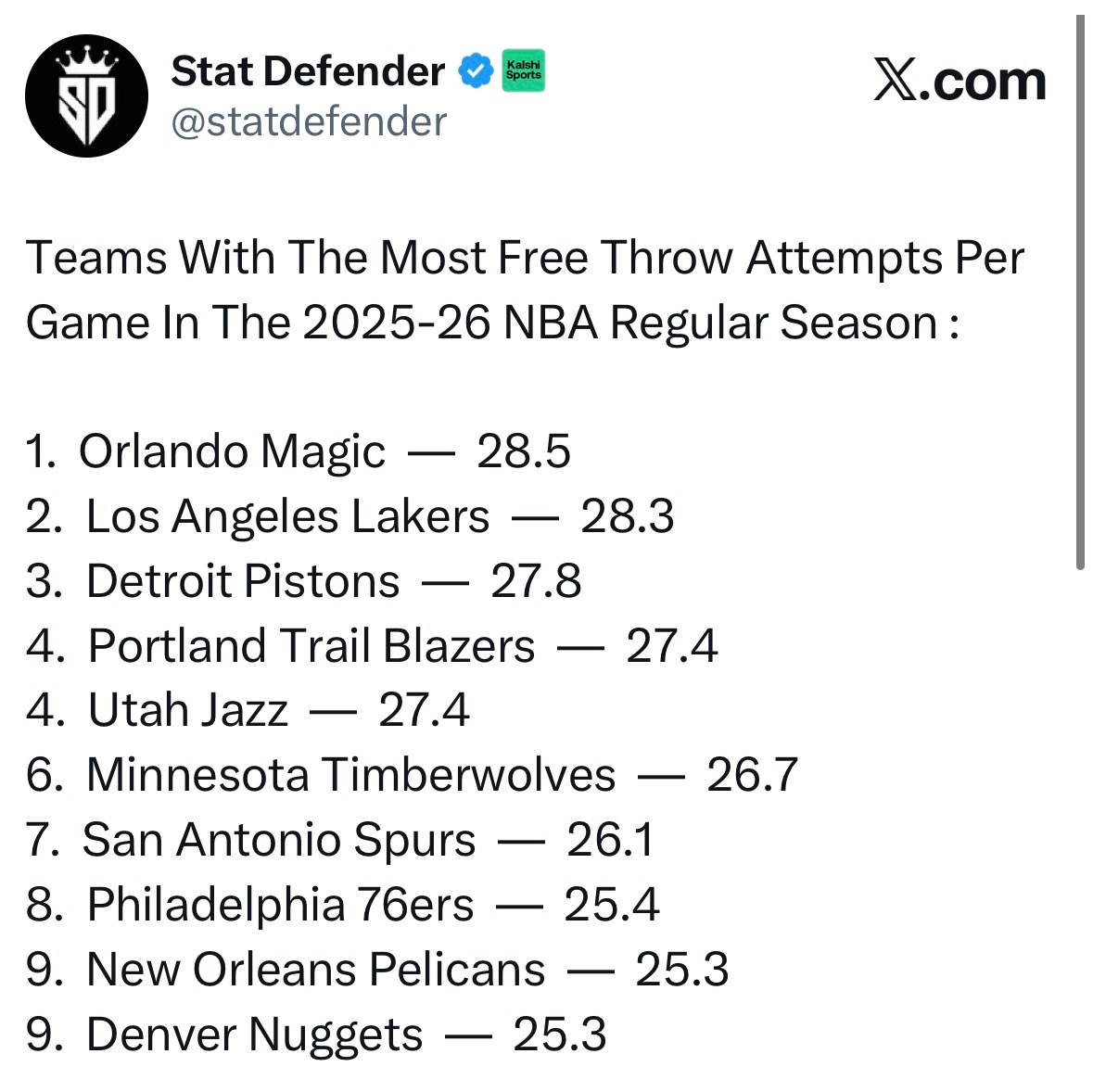 赛季到现在,凯尔特人依旧是场均罚球最少的球队。他们场均19.5个罚球,落后倒数第