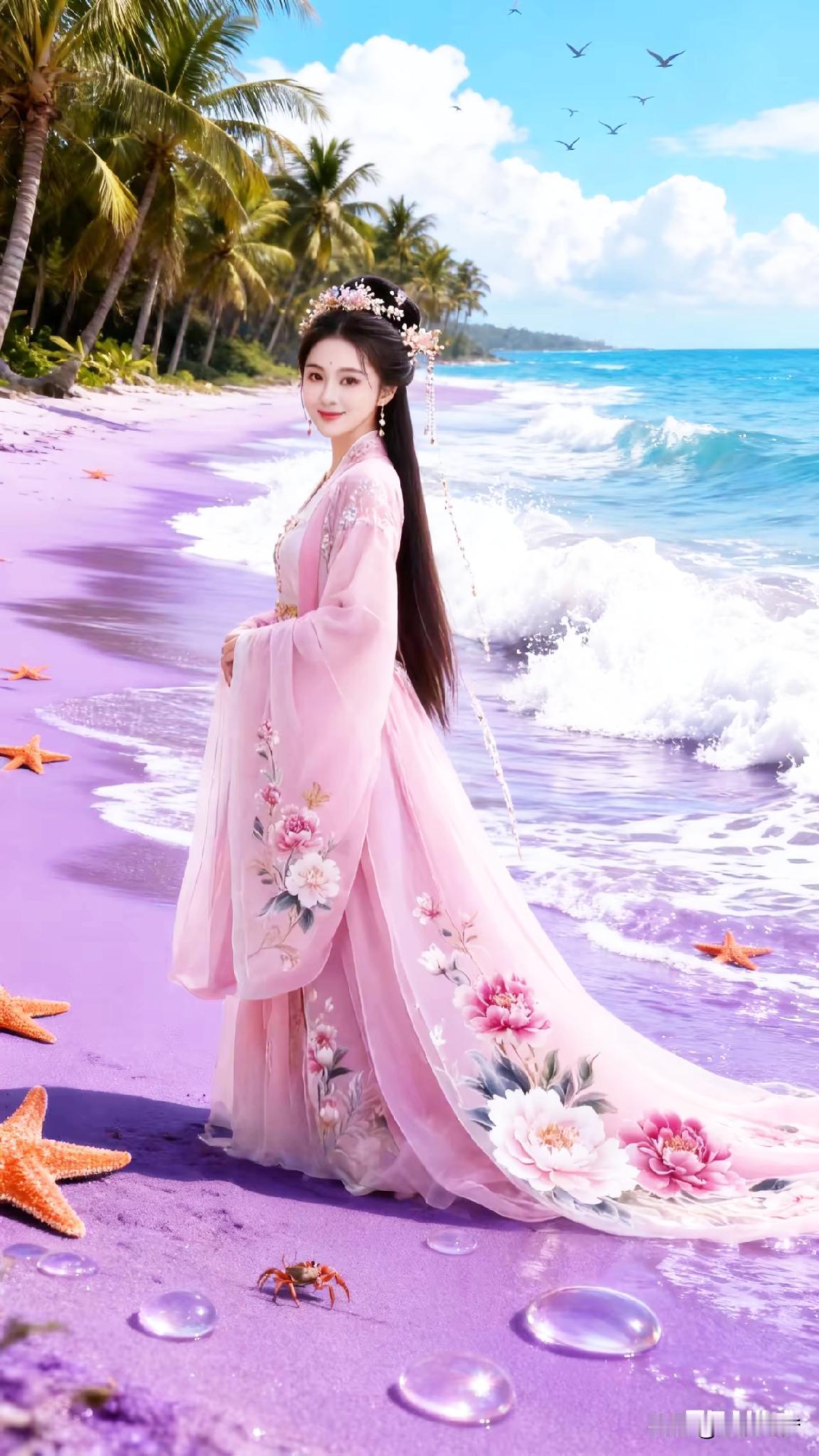 温柔甜美的古风美人,粉嫩背景下的优雅气质