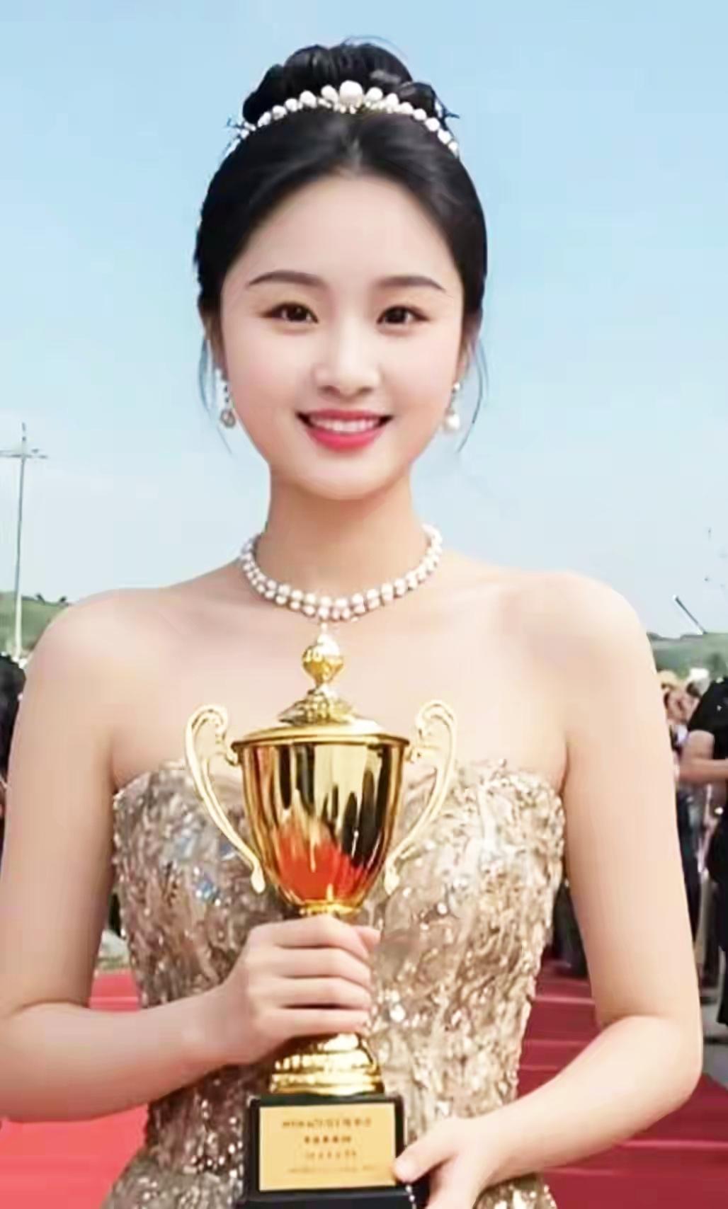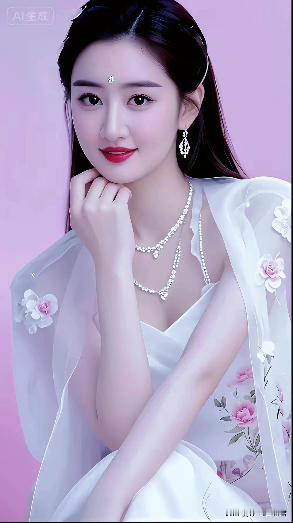 优雅白裙少女,珍珠项链闪耀,甜美笑容动人