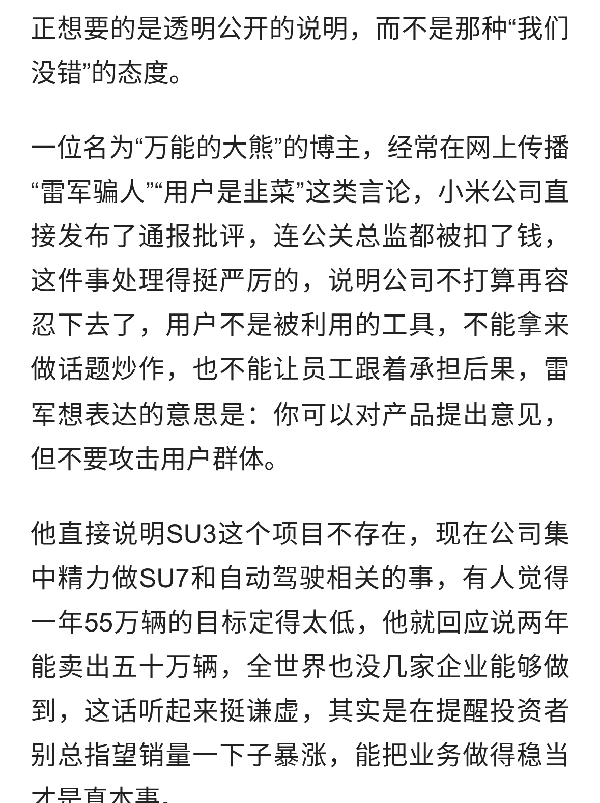 雷军开启2026年第二场直播回应 SU7 质疑!称并没有规划 SU3