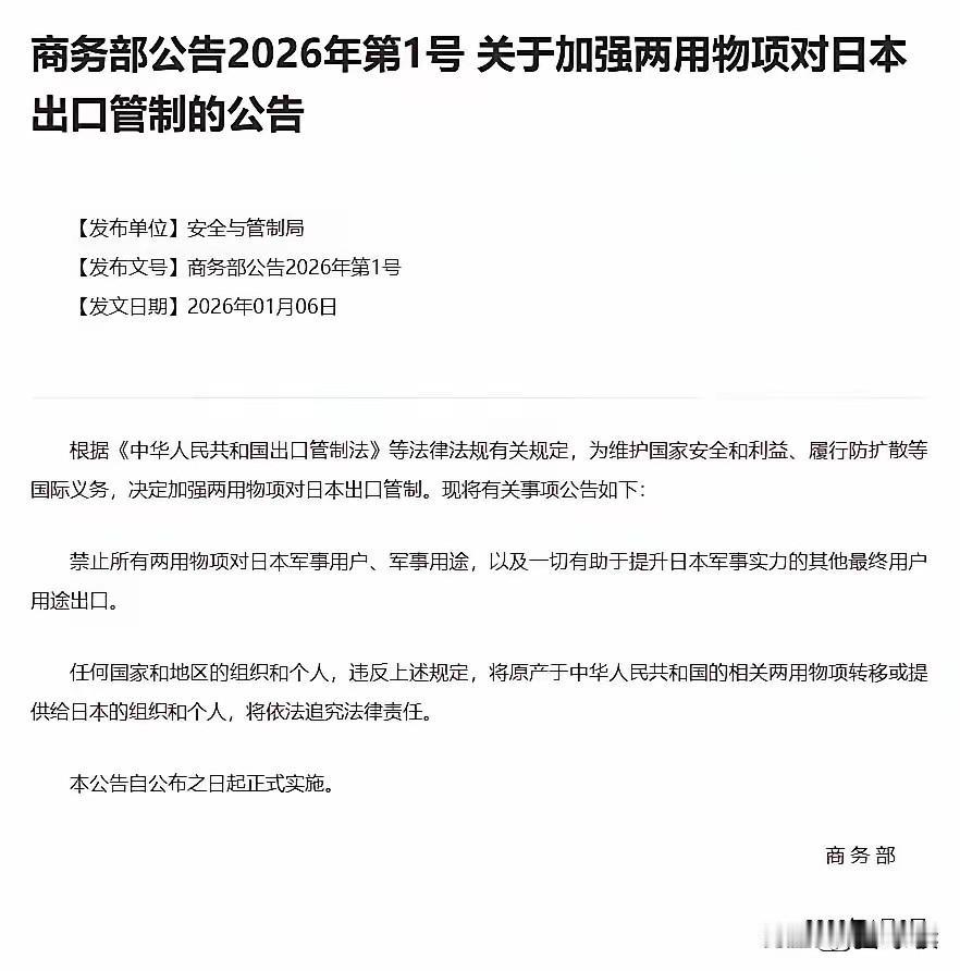 我只能说, 中方不到48小时对日本2次反制真的太及时了,第二号公告对日本反倾销调查。 日本对中国商务部1号令和2号令抗议也没有用,都已落地的事。 1号和2号都是对日本的,1号令明确告知,军民两用物资出口对日本的管制,共计1000多种不能对日本出口,也不能通过第三方转让给日本,违者要追究法律责任,这1000多项涉及军民两用的物资都被控制,给日本经济要去工业化,让他知道错误言论不能乱说。 2号公告就是对日本二氯二氢硅反倾销调查,二氯二氢硅是芯片胶,这个中国早已量产了,不想再用日本的二氯二氢硅了。 通过1号令和2号令我们可以看出,日本没有可以拿出手的产品了,我们自己都可以自给,中国是工业齐全的大户,涉及所有项目中国都可以解决,不再受别人掐脖子。