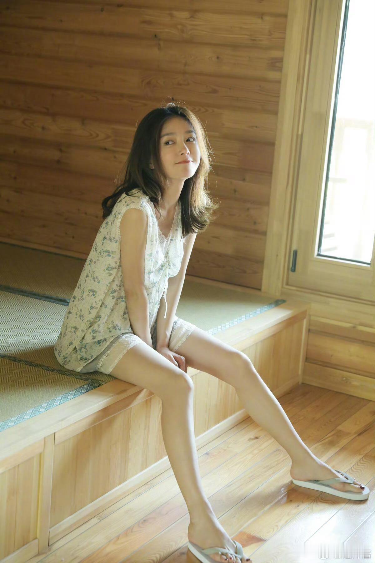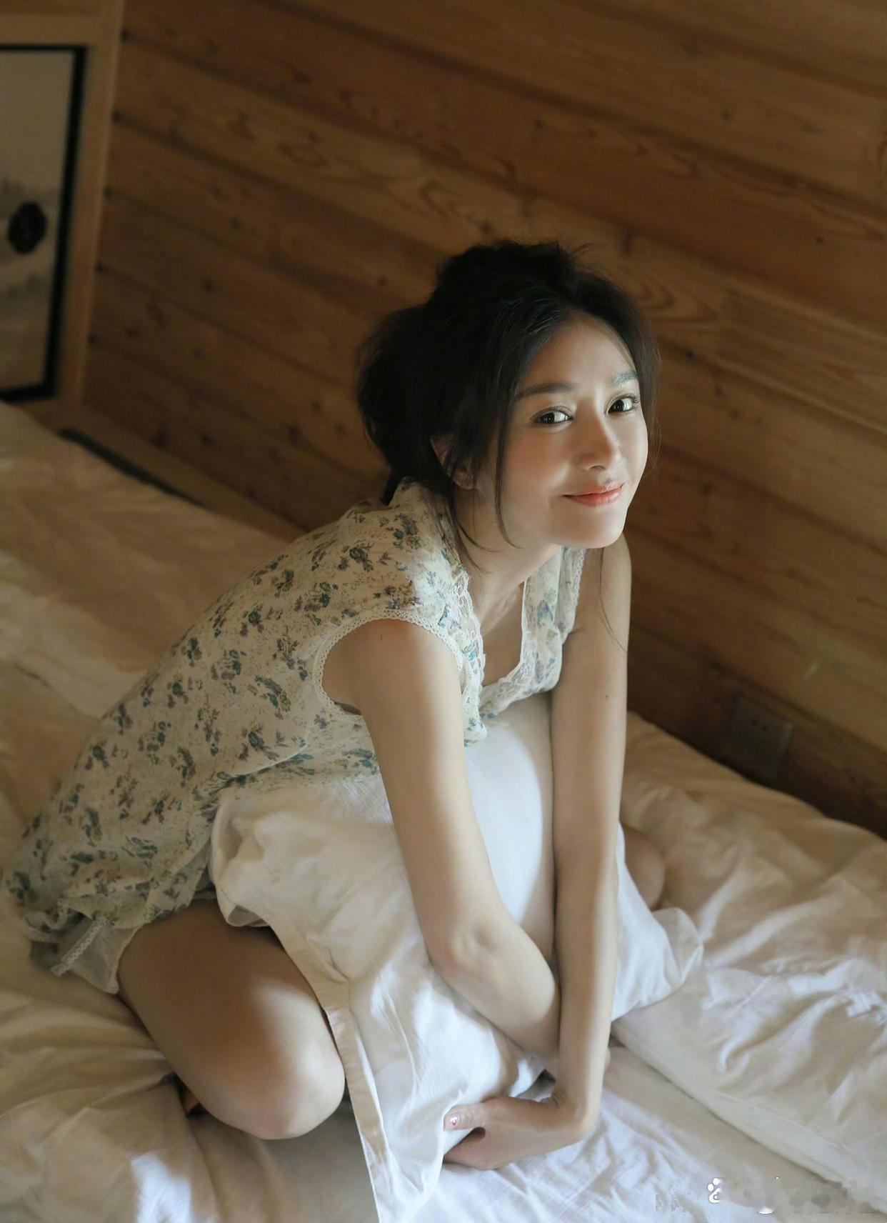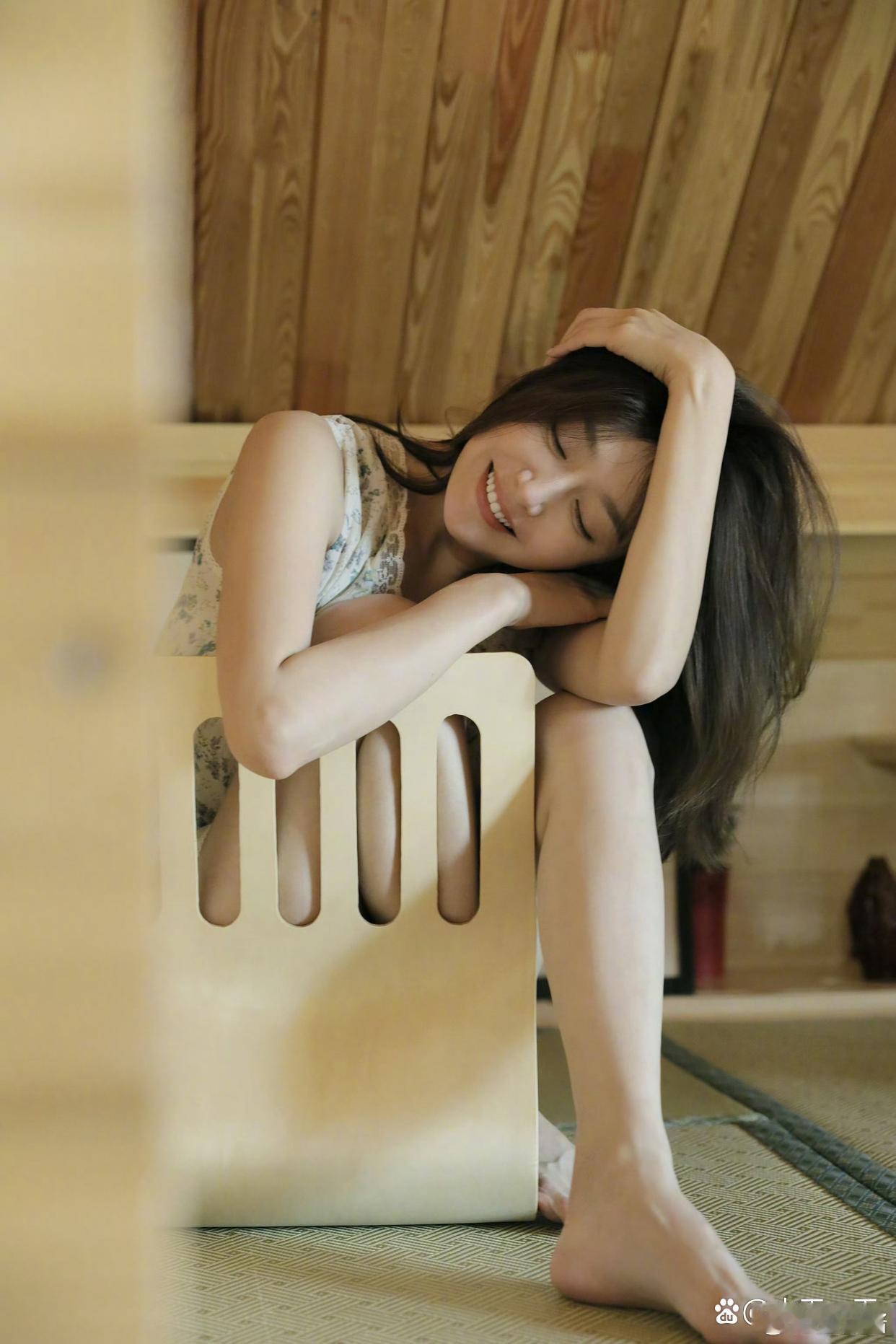 秦岚拍少女感写真啦,穿花裙光脚丫,老好看了。