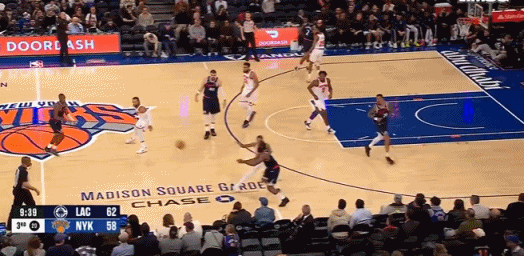 见缝插针,直捣黄龙! 这球真漂亮啊,哈登面对尼克斯五人的包围圈直接上演一条龙! 哈登突破从来不靠速度而是纯靠技巧和节奏过人,这球是最典型代表作! 先是一个背运变向晃过麦克布莱德,紧接着用胯下变向躲开布伦森的断球,两招就直接撕开了尼克斯的三人包夹防线,篮下两人要提防哈登突分,不敢硬上,让哈登轻松冲击内线上篮得分!