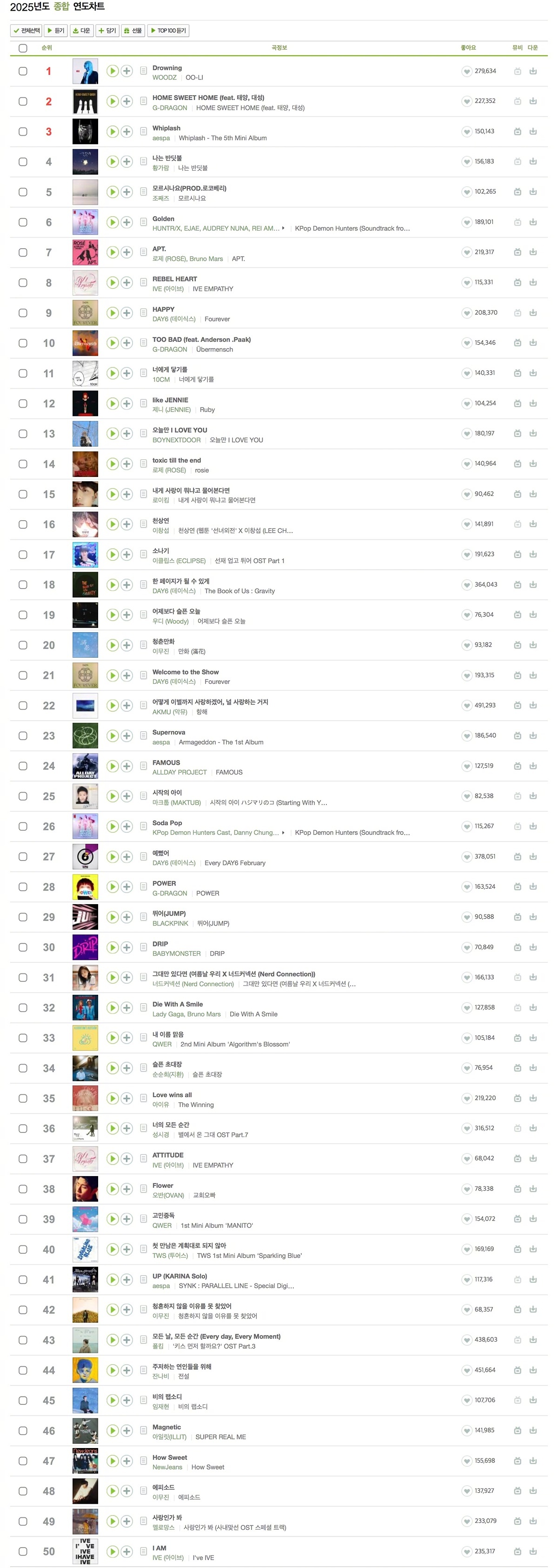【Theqoo】2025年Melon综合年榜: