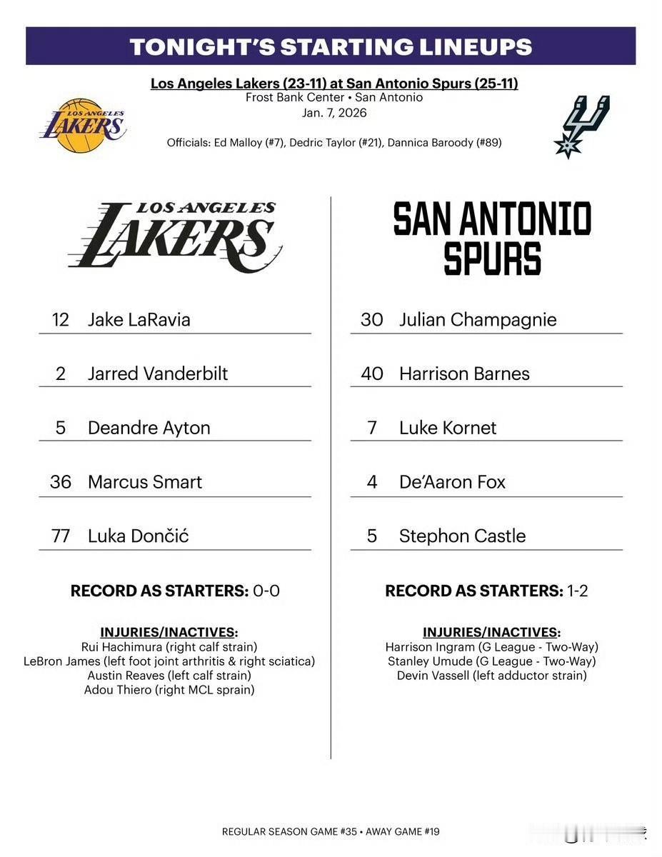 变阵!范德比尔特提上首发! 今天客场背靠背对阵马刺队的比赛,里弗斯、八村塁继续因伤缺阵,詹姆斯也在赛前由出战成疑降级为缺席比赛。这样一来,雷迪克只能再对首发阵容进行调整,他将近期表现出色的范德比尔特提上首发阵容,搭档东契奇、斯玛特、拉拉维亚、艾顿,这是他本赛季首次出任首发。 在经历了被雷迪克弃用多时之后,范德比尔特终于凭借自己的拼劲重新进入轮换阵容,也越来越受到雷迪克信任。今天对阵马刺,范德比尔特在防守端的任务很重,他需要在防守端限制福克斯和卡斯尔两大后卫其中之一,又是一次证明自己的宝贵机会。