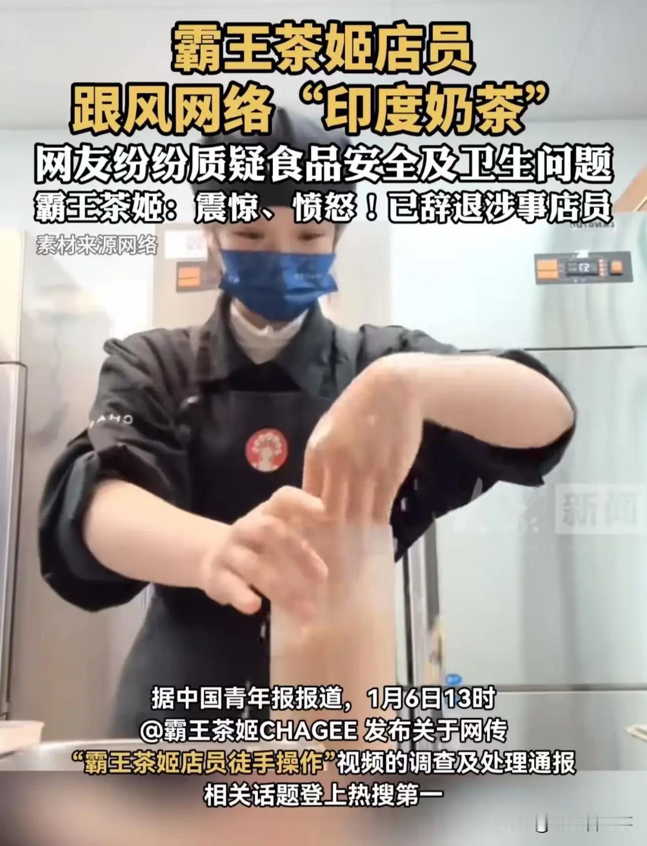 仅凭一己之力,让全国奶茶店都遭殃!2026开年“最虎”员工出现了!一位霸王茶姬icon奶茶店员工跟风拍用手做印度icon版奶茶的视频,不仅把手伸到摇奶茶的杯子里面搅拌,还顺带给自己洗了一下手,可以说跟拍的非常成功,视频爆火,但自家品牌却是无妄之灾! 这位“虎”员工的火爆视频一夜之间在网络上刷屏,网友们纷纷点赞、转发,甚至开始热议:“原来,奶茶店的员工也能这么“霸气”!”然而,令人唏嘘的是,这场“爆红”背后,却隐藏着一场品牌危机的潜伏。 你有没有想过,这样一段看似“搞笑”又“勇敢”的视频,究竟反映了什么?在这个追求个性、强调自我表达的时代,一名普通员工竟然敢在镜头前“放飞自我”,用手搅拌奶茶,还顺便洗手,这种行为虽然让人忍俊不禁,但背后隐藏的却是企业管理的漏洞和员工压力的缩影。 这不是简单的“个别行为”,而是折射出当下许多企业内部的“无形压力”。员工在快节奏、高压的工作环境中,可能早已对“规矩”心生反感。面对繁琐的流程和严格的管理,部分员工选择用“另类”方式表达不满,甚至“借势”出位,以吸引关注、发泄情绪。 更令人担忧的是,品牌形象的损害。原本只是一个普通的奶茶店,突然因为一段“火爆”视频,变成了“网红打卡点”,但这“火”背后,却可能埋藏着“失控”的隐患。消费者的关注点变了,从奶茶的品质变成了员工的“奇葩操作”。一时间,品牌的专业性和形象都被打上了问号。 这场“意外爆火”的事件,究竟是偶然的“幸运”还是“警钟”?其实,它折射出一个深层次的问题:在追求创新和差异化的同时,企业是否真正关心员工的权益和心理健康?是否有一套完善的管理制度,让员工在表达个性时不失底线? 作为消费者,我们也应理性看待。我们喜欢看“有趣”的内容,但更应该关注背后的企业文化和管理逻辑。一个品牌的长远发展,绝不是靠“出位”的员工视频撑起来的,而是靠企业对员工的尊重、对品质的坚守以及对责任的担当。 这起事件,或许只是一个“爆款”的开始,但更应该成为企业反思的契机。我们期待,奶茶行业不仅仅在口感上创新,更在管理和文化上实现真正的突破。毕竟,只有“正能量”满满的团队,才能带来持续的品牌温度和消费者的信赖。 所以,下一次当你看到类似的“爆款”时,不妨多想一想:这背后,是不是也隐藏着一些值得我们深思的“人性”与“责任”?让我们一起期待,一个更加健康、更加有温度的行业未来。