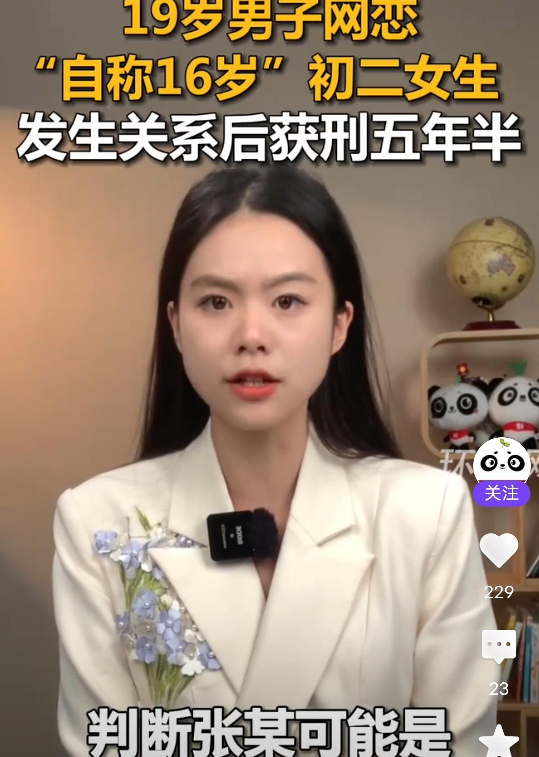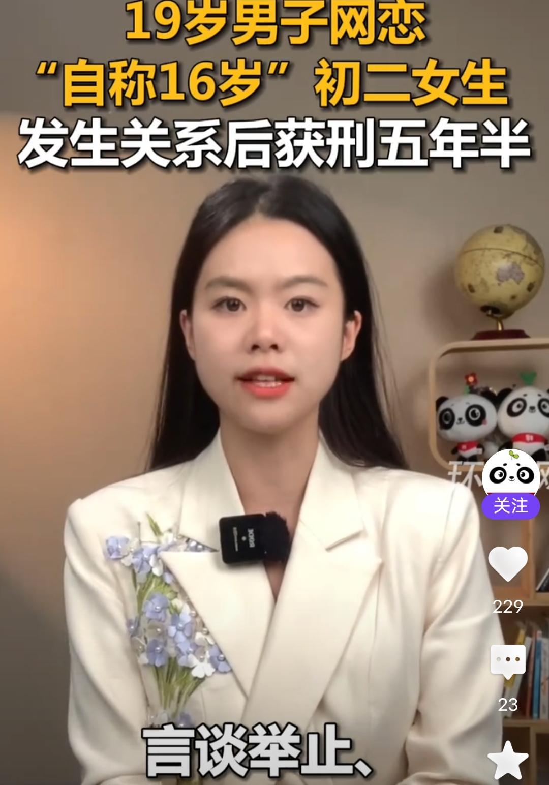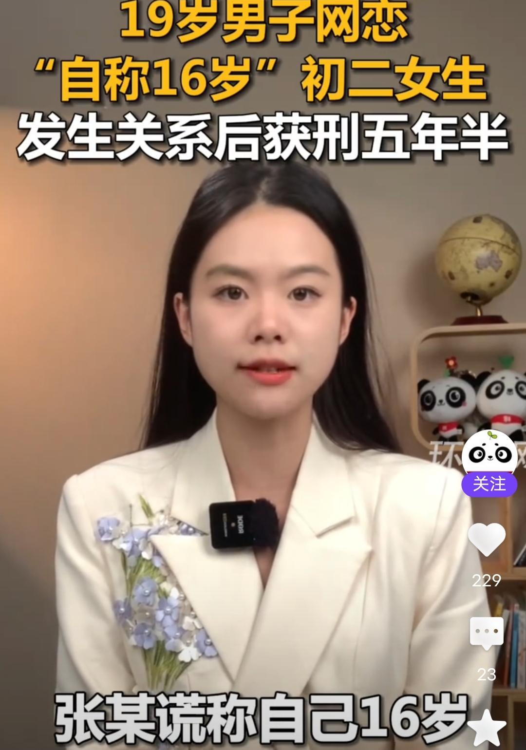 这应不应该说活该呢?成年人就要为自己的行为负责! 19岁男子网恋“自称16岁”初二女生,发生关系后获刑五年半! 刚在环球网看到的来自九派新闻的报道,1月6日,记者从包头铁路运输法院获得知晓,19岁的李某通过手机游戏认识了13岁的张某,张某谎称自己16岁,随后两人确定了恋爱关系,后来两人多次在张某家发生X关系,后来李某帮张某写作业。发现张某还是初二的学生。最后被判“强J罪”,获刑五年半。 现在的孩子怎么都成这样了,首先,一个19岁的男孩子,已经成年了,应该有一定认知和经验了吧?一个人是否成年,幼女和成年女孩在发育和言谈举止,穿衣打扮上是有区别的,李某多次跟张某亲密接触,怎么可能没有发现呢?所以被认定明知、故犯,所以他不冤! 另外,一个13岁的孩子,居然谎称16岁。还敢跟人发生那样的关系,这孩子是个什么孩子?什么品行?还撒谎?还多次把陌生男人带回家。可见没有大人管教,已经长歪了。家人不应该好好反省吗?生了就要负责管教,这样放任不管不是害人害己吗? 社会百态 未成年人案
