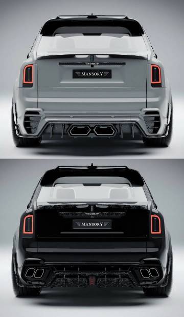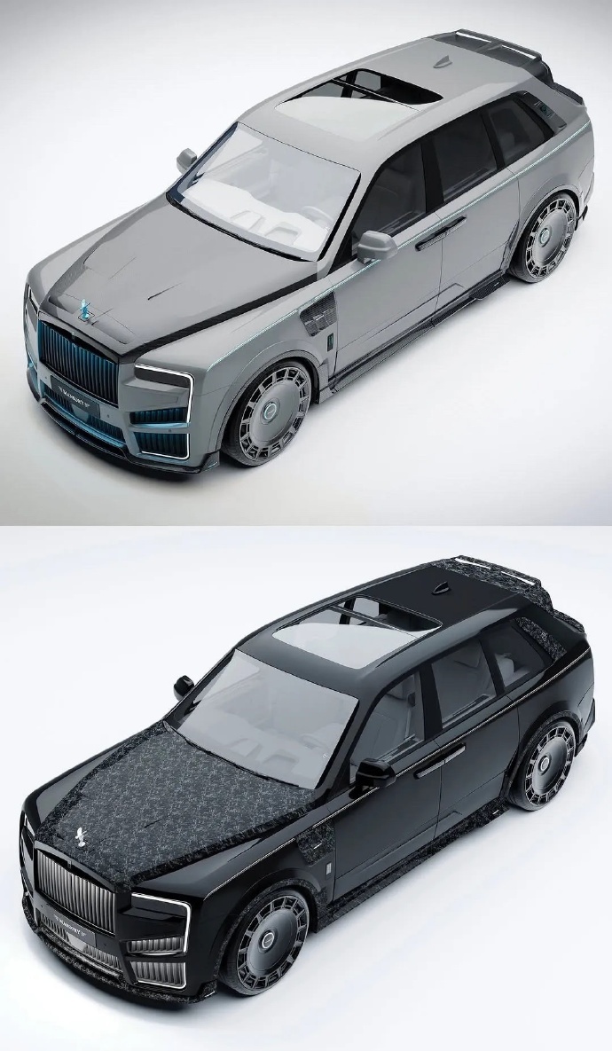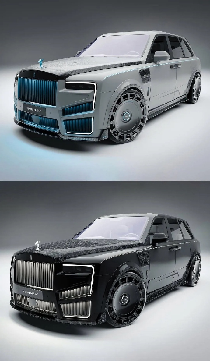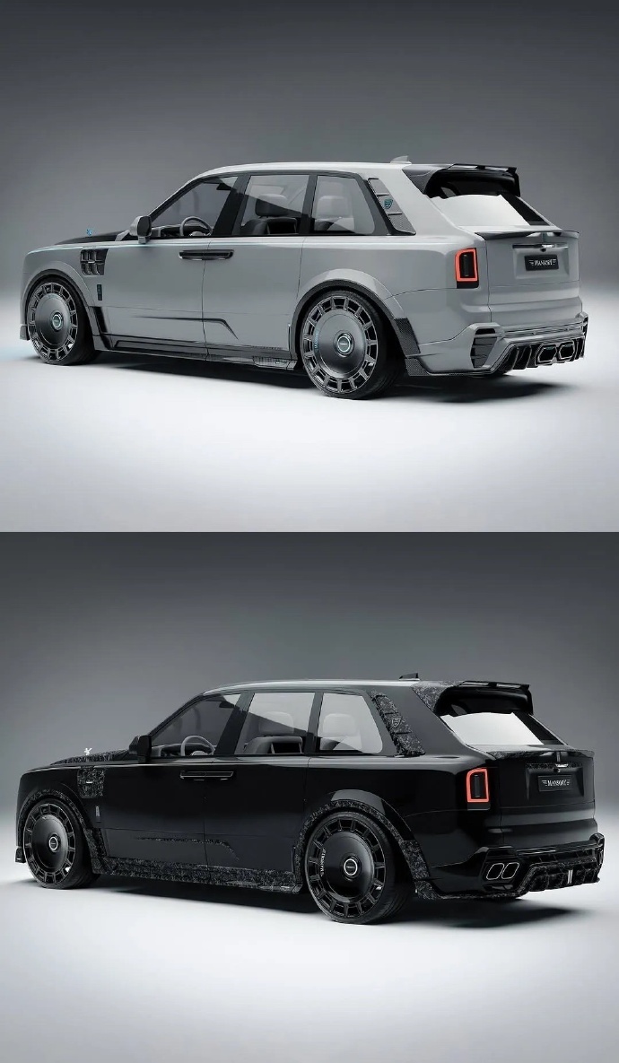 Mansory改装2025款劳斯莱斯库里南Series II。 两个版本,分别采用了深浅不用配色及碳纤维材质以及中置双出和双边四出的排气。