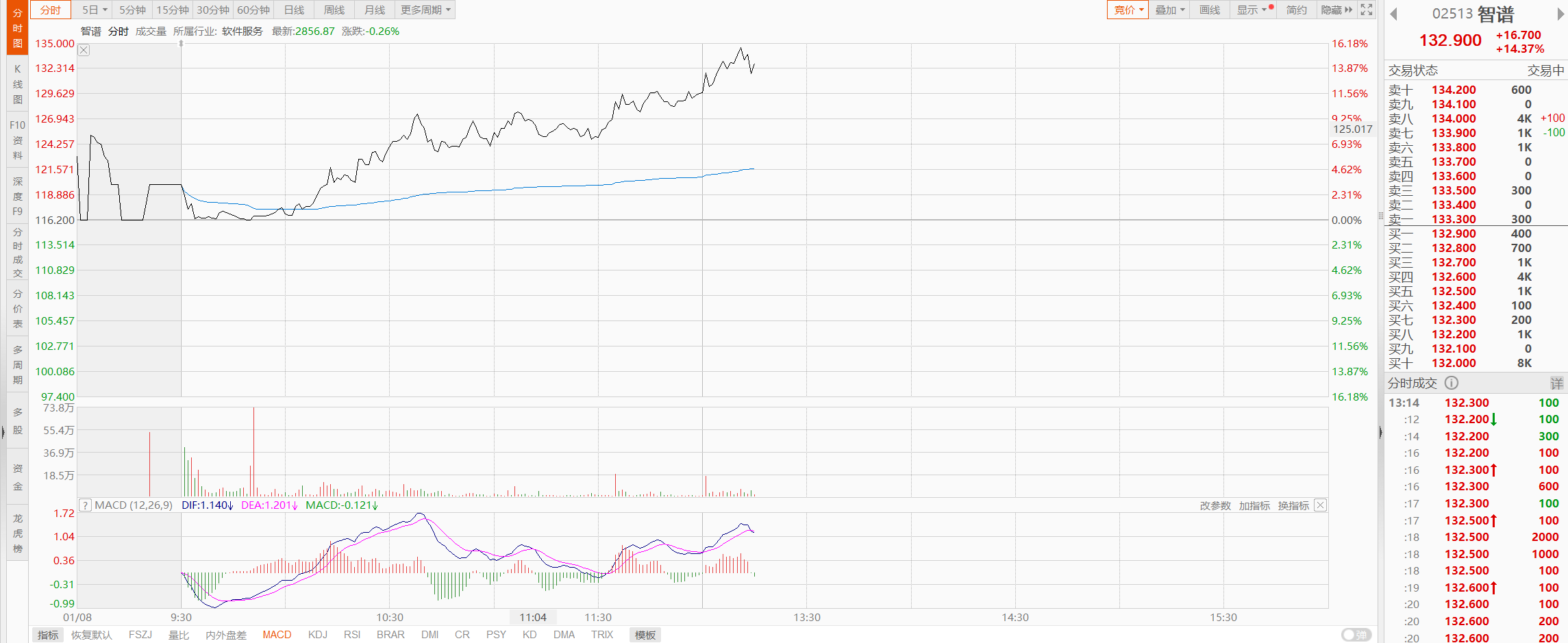 1月8日,早盘开盘不久时,国产大模型新股智谱(02513.HK)曾短暂出现破发,随后开始震荡上涨。截至中午收盘,智谱收涨11.70%,报129.8港元/股,市值达到571.4亿港元。午后,智谱股价再度拉升,涨近16%,股价摸高至135港元/股。