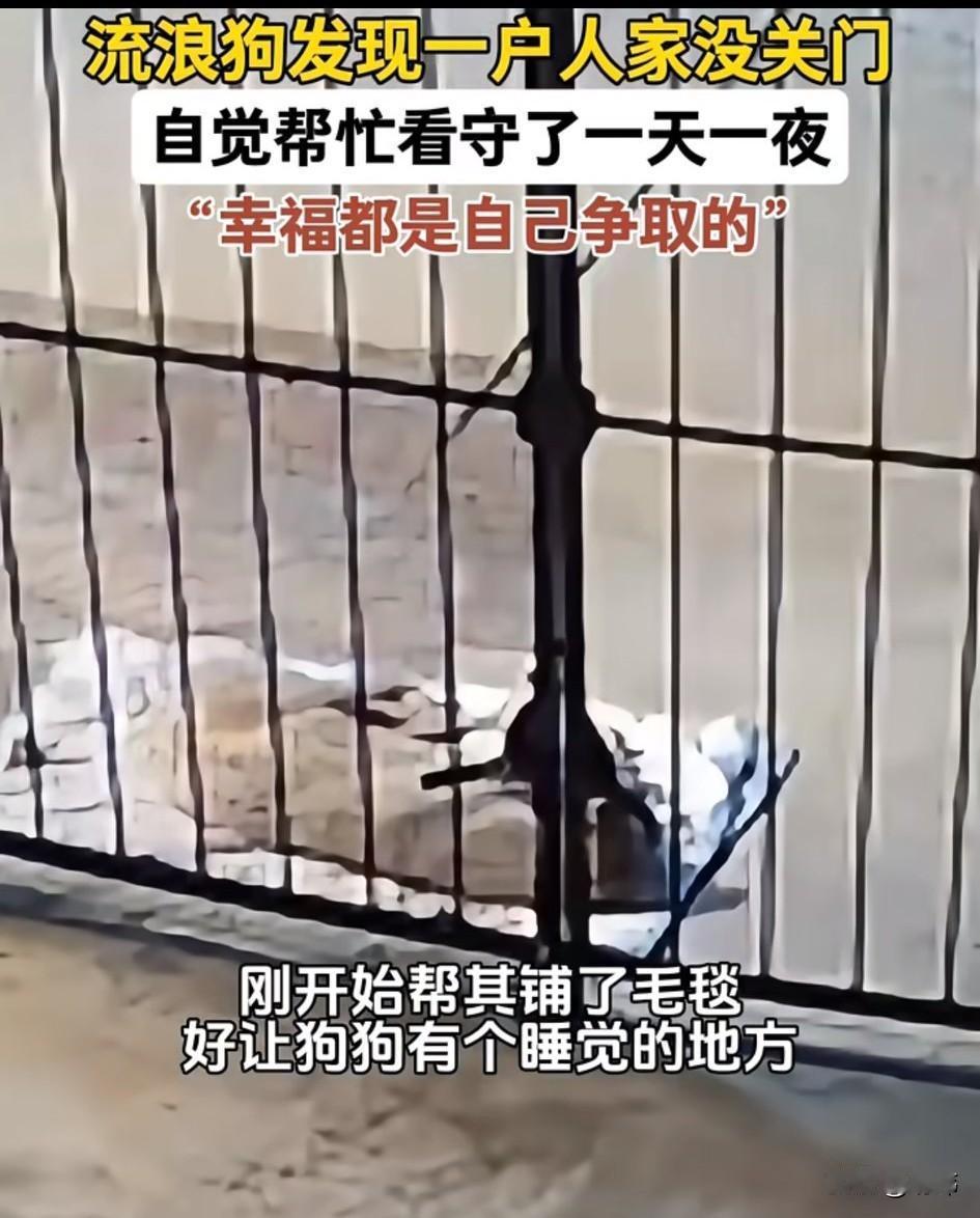泪目了!这天一只流浪狗路过一户人家的时候发现她的门没有关,它记得曾经的主人教它要看家护院,门没关,就要守在那里,于是它就自觉帮忙看守了一天一夜。 当主人从监控里看到了这一幕,她非常感动,于是拿出食物来感谢它,而狗狗吃完了又接着蹲在那里看门,善良的小姐姐顿时心生怜悯之心,于是就帮它铺了毛毯,让它可以睡在门口,可这天却下了大雨,于是小姐姐又帮它购买了一个狗窝,用来遮风避雨,真的是幸福都是自己争取来的,它用实际行动为自己赢得了一个家和一个爱它的主人。