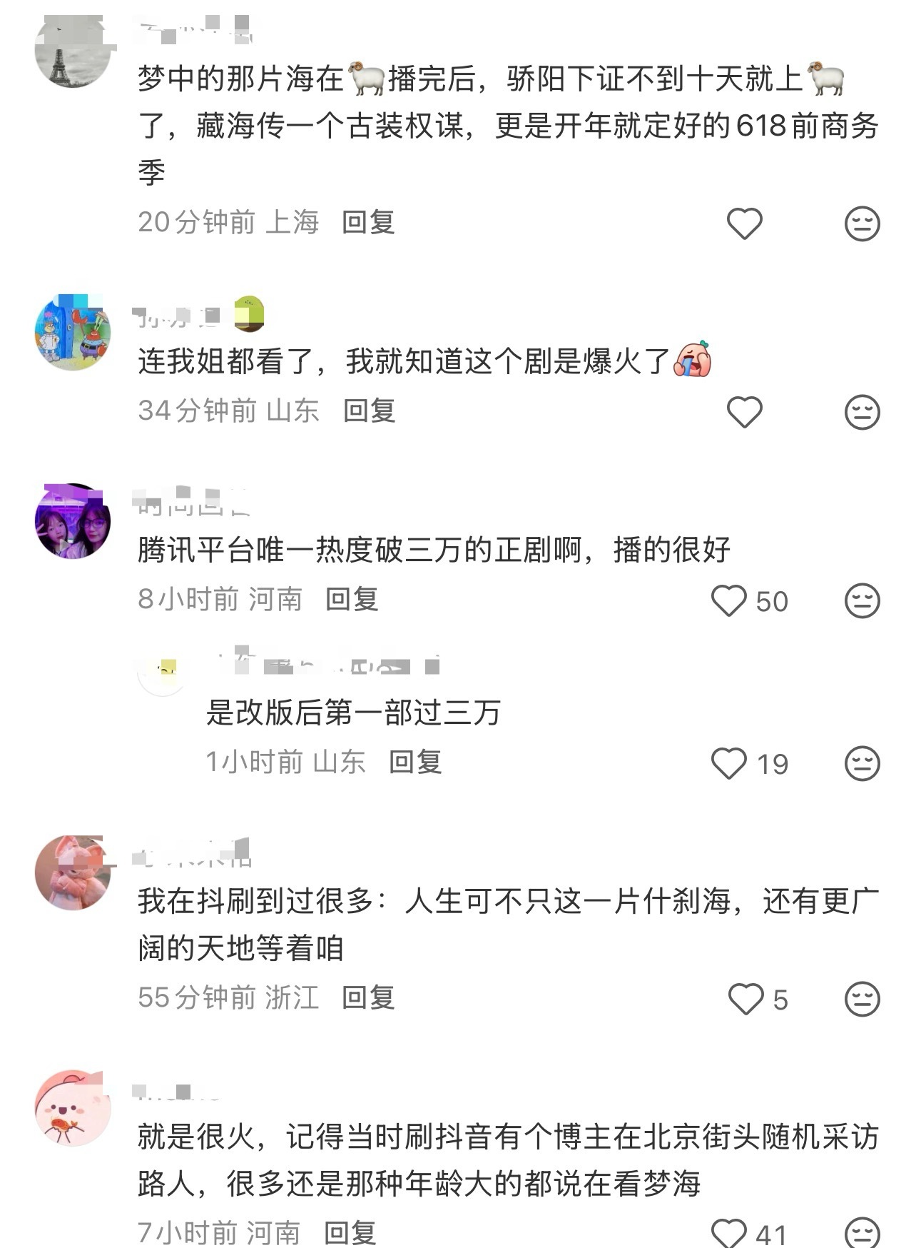 主要是肖战作品覆盖太快,藏海传质量又太高了,导致大家忽略了《梦中的那片海》在下沉市场发酵的情况,梦中的那片海本来刚播的时候就很火,是官方认证的台、网、口碑三爆的作品,而且受众很多是不咋活跃互联网的椰奶肖春生长城念诗每年都出圈,今年是现象级的出圈! 口碑好才能有这么好的长尾
