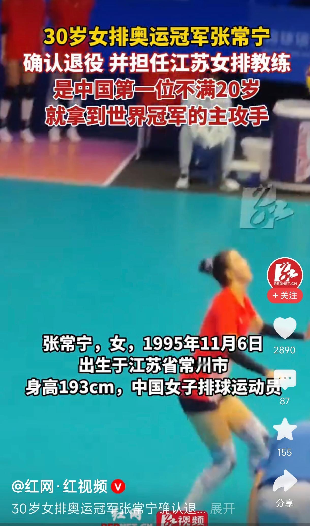 张常宁官宣退役 张常宁作为中国女排的杰出代表,凭借出色的表现和辉煌的职业生涯,赢得了广大球迷的喜爱和尊重。她的退役标志着一个时代的结束,也为中国女排的未来培养了宝贵的经验和人才。祝愿张常宁在教练岗位上继续发光发热,为中国排球事业贡献力量!女排 女排运动员