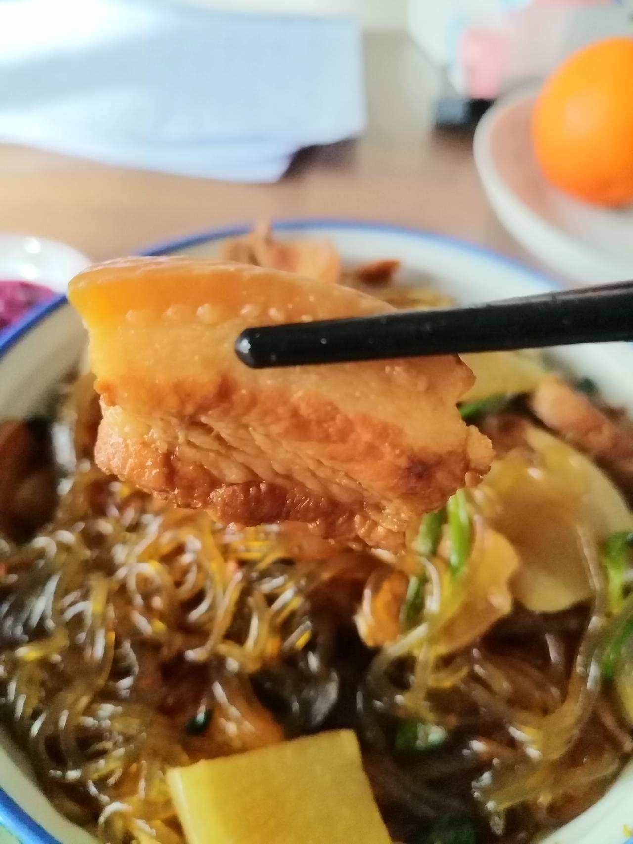 今天吃老陕大烩菜。 每年一到冬天,老公就会经常念叨小时候在农村老家吃的大锅烩菜,说的香的呀,我听着光想笑,我感觉那是因为困难时期食物短缺才导致的美味错觉。那时候他们平时吃不上好的,每次都是家来人才能放开吃一顿。 我今天就做一顿让他解馋。 买了一块精品五花肉,泡了点红薯粉条、木耳,豆腐、白萝卜切片,洗了几棵菠菜,所有原料就这些,今天这块五花肉可以,肥瘦一层一层,焯水切薄片下锅倒点料酒炒干水分开始红烧,炖了四十分钟炖的软糯入味,再把所有配菜放进去炖了十分钟,一开锅真的好香,馏了一盘大白馒头,馒头就烩菜,香喷喷,吃完全身暖和,这个菜最适合老年人冬天吃。