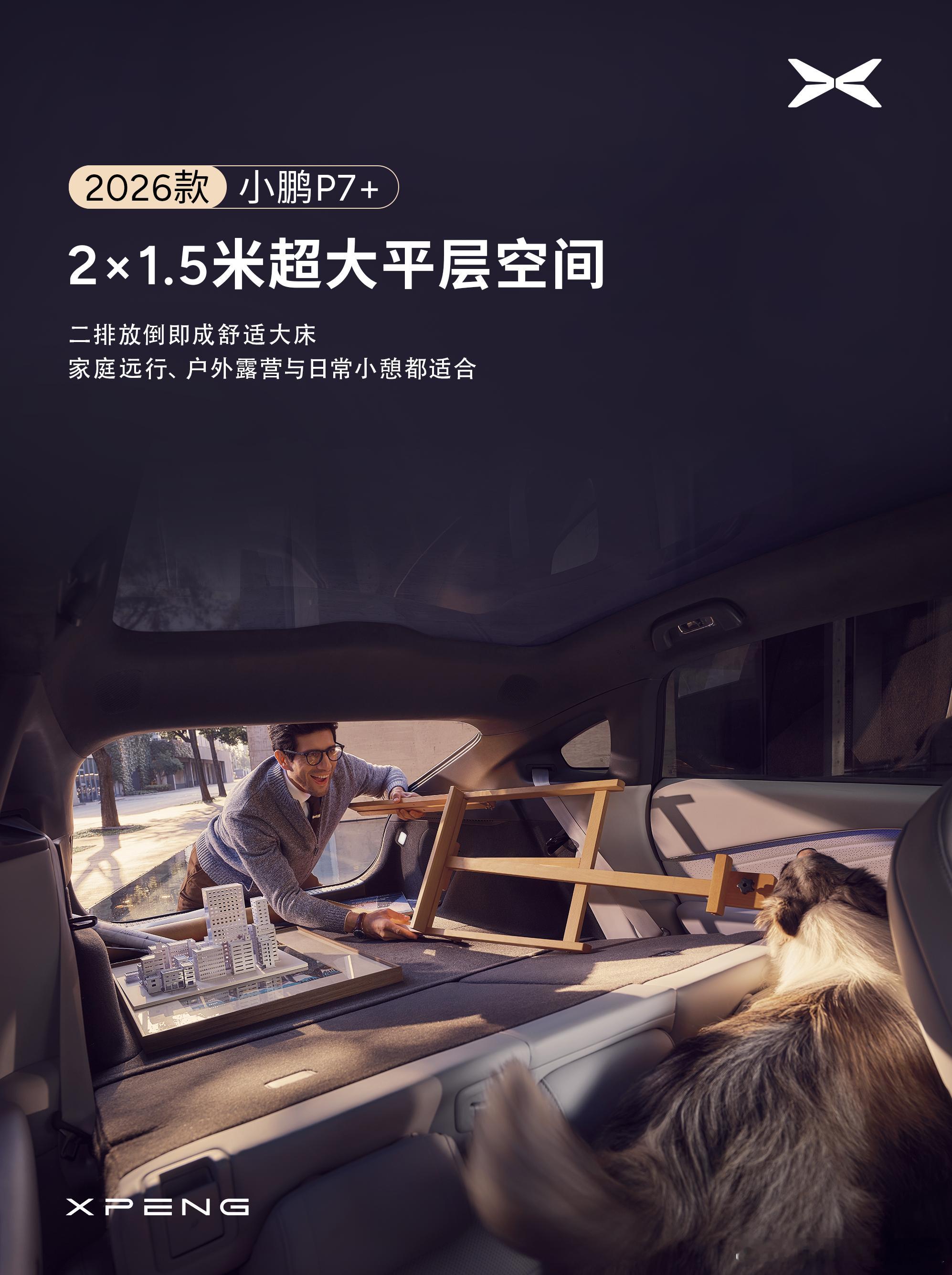 谁说轿跑只能顾颜值?朋友们,2026款小鹏P7+来了,它要让轿跑车型保持颜值与运动的同时,兼顾空间与舒适,拉风和顾家两不误!新款小鹏P7+自带空间魔法。前后排双二郎腿自由,大家体验过嘛?小鹏表示,新款小鹏P7+用C级尺寸开出D级空间体验,88%得房率实现越级表现。我看到资料上称前后排双1米驾乘空间,这对于我这种近2米身高的人来说,真是太香了!我和家人前后排乘坐再也不用互相迁就座椅空间了。而且资料上说,新车搭载了超薄109mm的800V电池包,这表示地台降低了,这对于轿跑太重要了,轿跑车型受制于车顶外形限制,往往后排头部空间受限,能让轿跑车告别头部压抑,真是牢牢抓住了用户痛点。其实让我最吃惊的是拓展了座舱空间的极限之后,新款小鹏P7+的储物能力不降反升。数据显示它拥有725L常规后备厢,按我的家庭使用经验,这个尺寸应对日常购物、短途出行的行李收纳没有问题,而且放倒二排座椅,可实现2×1.5米超大平层,轿跑也要变成“床车”嘛?企业还表示,后备箱扩展后共2221L的容量能塞33个20寸行李箱,如果轿跑车型空间做到这个地步,拿必须点赞了。另外,友情提示,今天何小鹏会在新款小鹏P7+发布会表演魔术,感兴趣的朋友多多关注。新款小鹏P7+和小鹏G7今日上市
