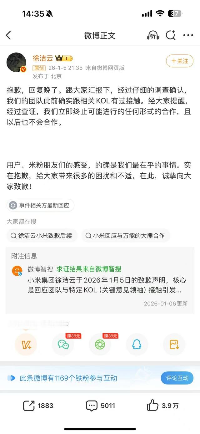 事件起因是小米计划与一位长期攻击小米用户的争议性KOL“万能的大熊”进行商业合作。