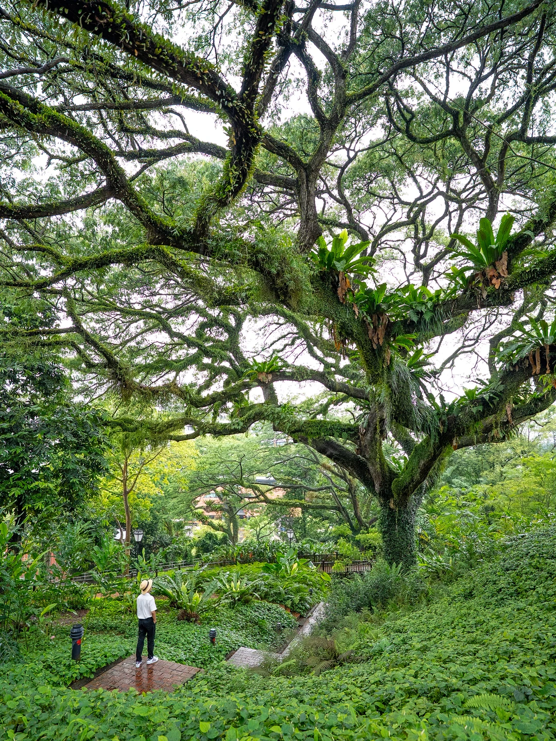 ▫福康宁公园:雨树枝繁叶茂像一把巨大绿伞,阳光透过缝隙洒下,广角一开随便拍,都是自带滤镜的森系大片。