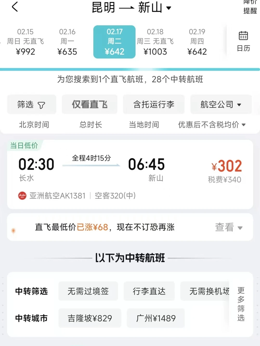 ✅在携程、去哪儿和亚航小程序购票,能薅低价机票!买机票时一起定行李额最划算,低至6折