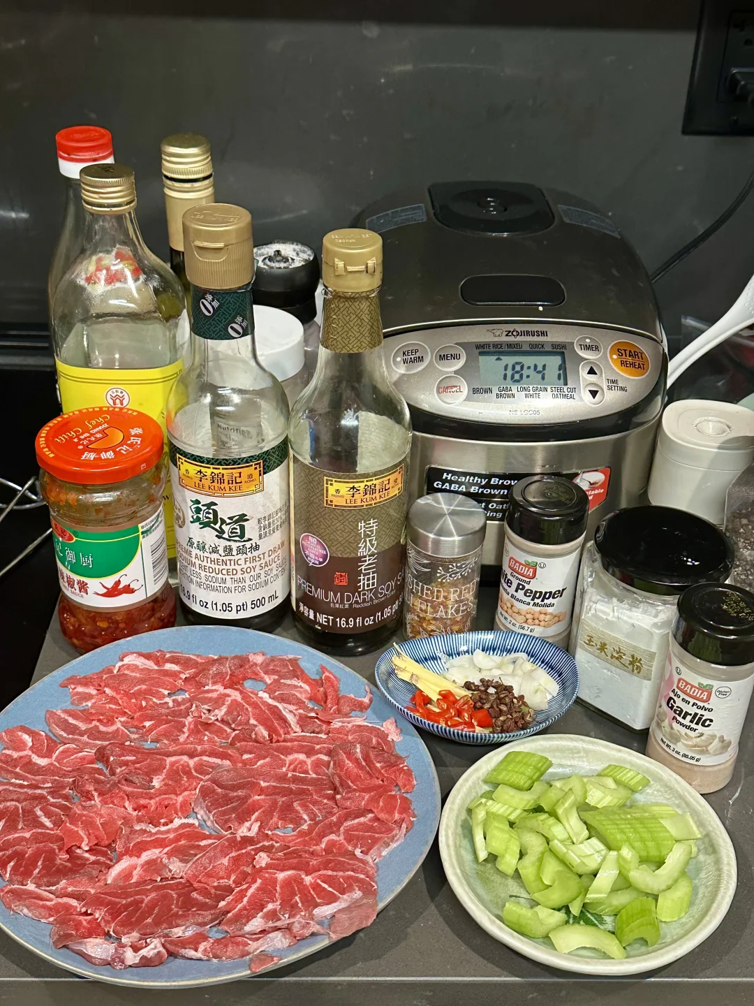 牛腱子半条,生抽2tbsp,老抽1tbsp,米酒1tbsp,白胡椒粉少量,辣椒粉少量,玉米淀粉1tbsp,芝麻油少许。