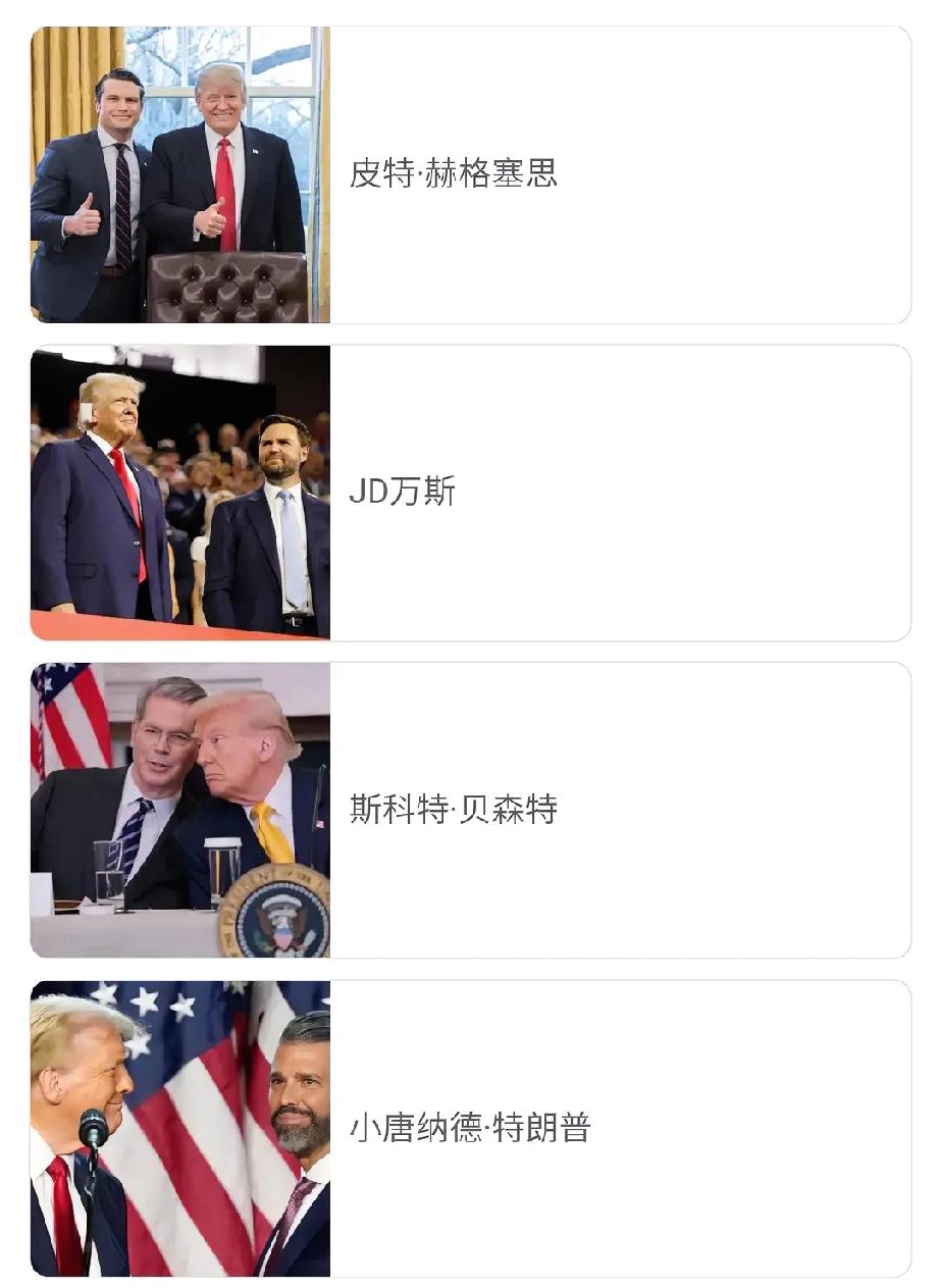 若小特朗普、万斯、赫格塞思和贝森特分别任命为“总督”,怎么分地区? 贝森特——加拿大:特朗普曾多次提及加拿大可成为美国的“第五十一个州”,还称很多加拿大人希望如此,并用“经济手段”来威胁加拿大。小特朗普作为特朗普的亲属,若负责“管理”加拿大,可凭借其与特朗普的关系,贯彻相关政策,利用美加经济联系中的不对称性,试图推动加拿大在经济和政治上向美国靠拢。 万斯——巴拿马:特朗普宣称巴拿马运河是美国“重要的国家资产”,要求巴拿马将其“归还”美国。万斯若担任“总督”,可凭借其政治立场,配合美国对巴拿马施加压力,以实现美国对巴拿马运河相关利益的掌控,毕竟美国历史上就对巴拿马运河区有过长期的控制和干涉。 赫格塞思——古巴:特朗普将古巴纳入目标国家之列,称其“与委内瑞拉非常相似,我们想帮助古巴人民”,暗示了美国对古巴内政的干涉意图。赫格塞思若负责古巴,可利用美国对古巴长期的经济制裁等手段,进一步施压,试图改变古巴的政治格局,使其向亲美方向发展 美国这种所谓任命“总督”的行为,属于重回17世纪的殖民时代,是严重违反国际法和国际关系基本准则的丛林社会行为,国际社会也不会忍耐下去。 最后还有小特朗普,我觉得小特朗普应该去格陵兰岛,毕竟特朗普一直都想把格陵兰岛纳入己下。如果是真的,特朗普估计还有私心,毕竟那里是天然的旅游胜地,可以开发旅游商业。