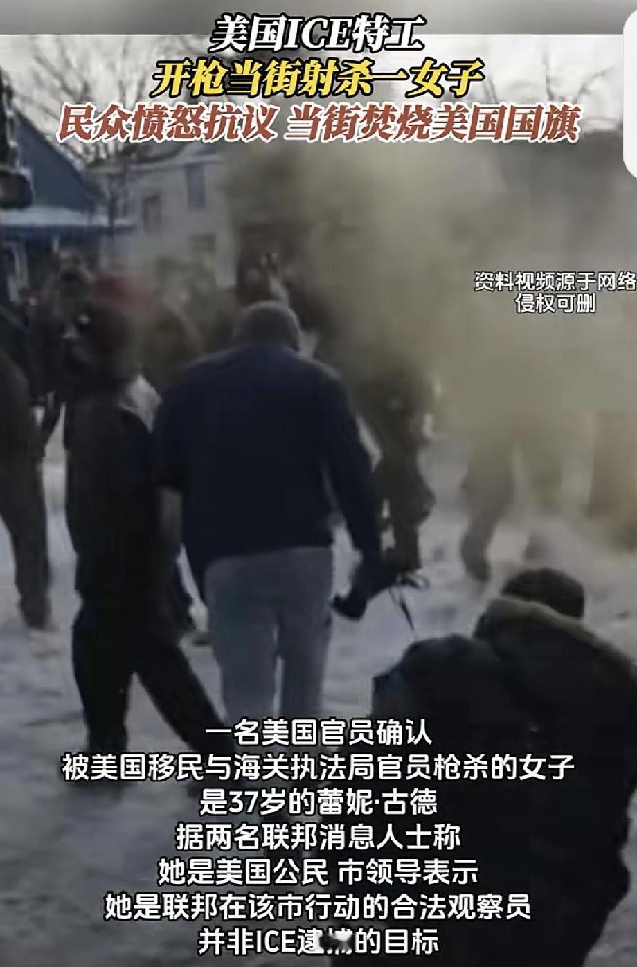 美特工在移民执法行动中射杀一女子 美特工在移民执法行动中射杀女子这事儿闹大了。1月7日,在明尼苏达州的行动里,37岁美国公民蕾恩·妮科尔·古德被打死。 联邦政府说是“自卫射击”,称女子开车冲撞执法人员。可市长亲自看了视频后强烈反驳,说联邦是在制造“垃圾叙事”。路透社核实的视频也显示情况没那么简单,无法确认车是否真撞了特工。 这一事件引发争议,特朗普称女子是“职业煽动者”,州长则指是“危险且煽动性执法行动”的结果。枪击后当地民众抗议,执法人员还用了胡椒喷雾和催泪瓦斯。移民执法行动到底是维护秩序,还是在制造混乱,值得深思。