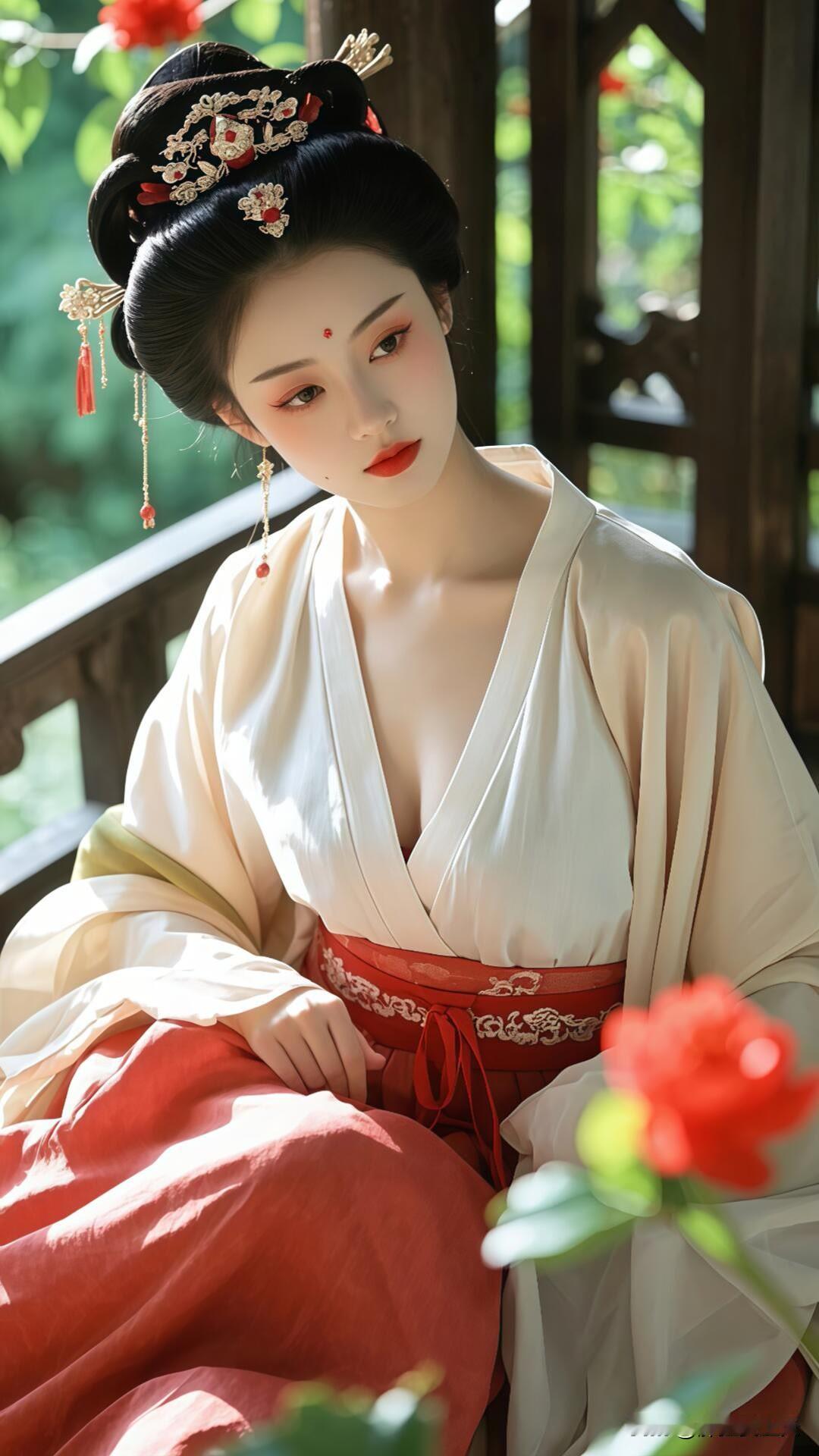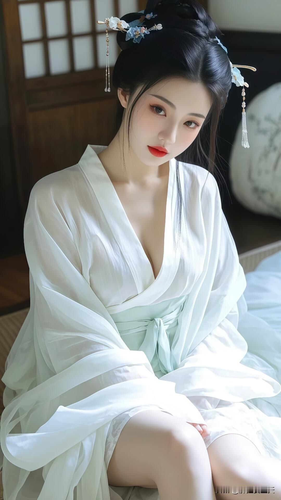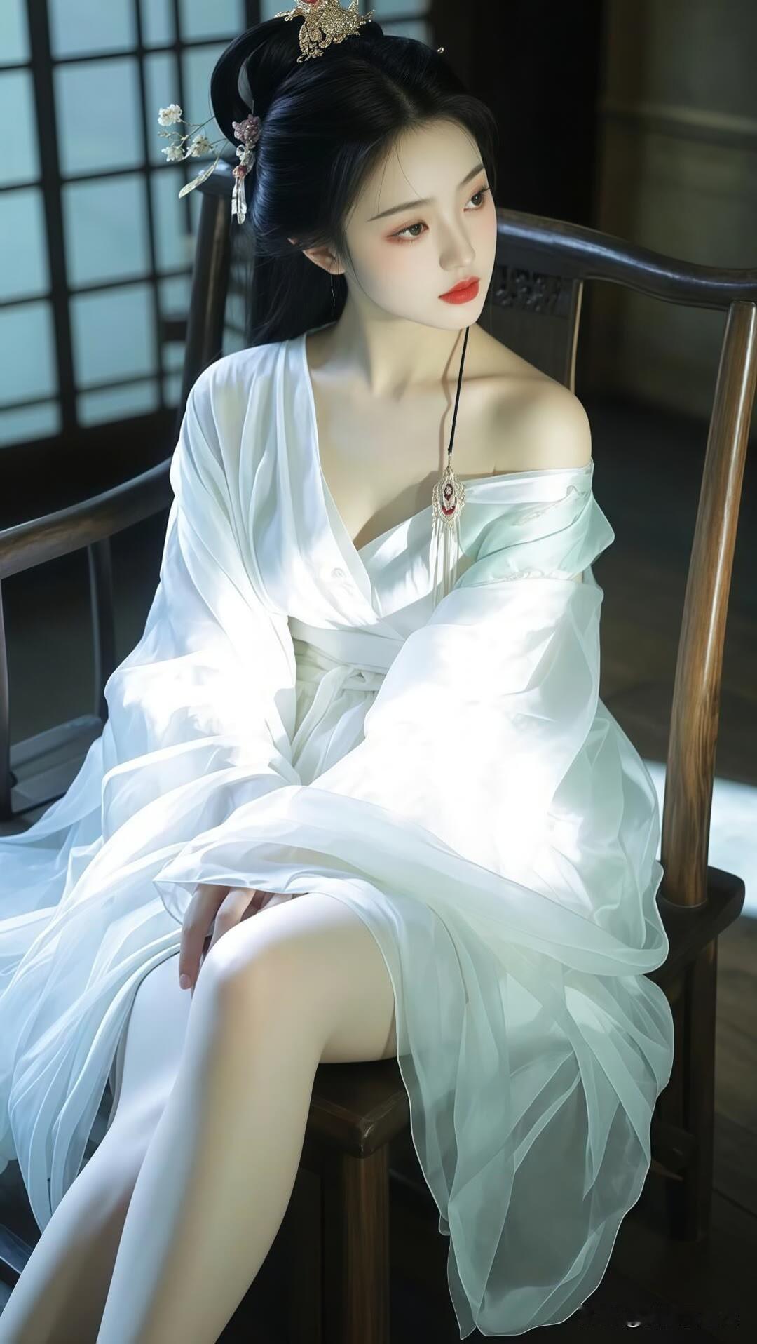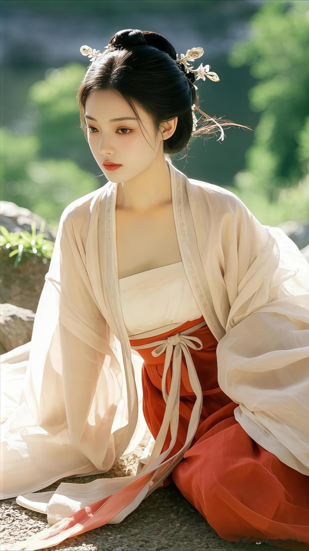 一袭白裙,两弯黛眉,古风妆容与发型尽显古典韵味,古装美女来袭。汉服古典人像 古典