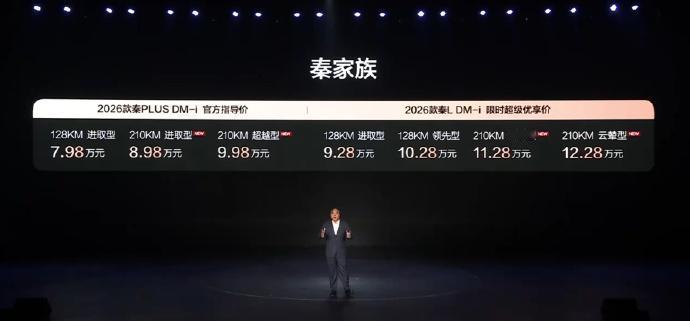 7.98-12.28万秦PLUS/秦L DM-i性价比天花板 2026款秦Plus DM-i 车身:4780*1837*1515mm,轴距:2718mm 油箱65L/1.5L发动机/刀片电池/120kW功率/零百7.6s 前麦弗逊后扭力梁/倒车雷达/远程控车/手机钥匙/16寸轮毂 128KM 进取型 7.98万 15.87kWh/4G/10.1英寸中控/8.8液晶仪表/蓝牙/6扬声器/手调座椅 15kW直流充/外后视镜加热 210KM 进取型 8.98万 25.28kWh/双区恒温空调/主驾电调/48kW直流充/电动天窗/后排杯托 210KM 超越型 9.98万 天神之眼C/泊车辅助/高快领航/DiLink 100座舱/5G/全场景语音/3D控车 12.8中控/千里眼/哨兵系统/车载K歌/行车记录仪/主副驾电调 2026款秦L DM-i 128KM 进取型 9.28万 128KM 领先型 10.28万 210KM 超越型 11.28万 210KM 云辇型 12.28万 教授觉得这边新更新了210KM版本,无论是秦PLUS还是秦L,无脑选210KM以上的配置,最低只需要9万,没看错,是9万!秦L的话,11.28万性价比还是有的,但是教授还是希望它再降一点。啥都想要的话,那就无脑顶配云辇C吧,12.28万的话,其实性价比直逼去年的海豹06dm-i旅行版,还是很值得买买买的,有没有让你心动呢?可是老用户可以安心了,确实比老的香。【来自懂车帝车友圈】