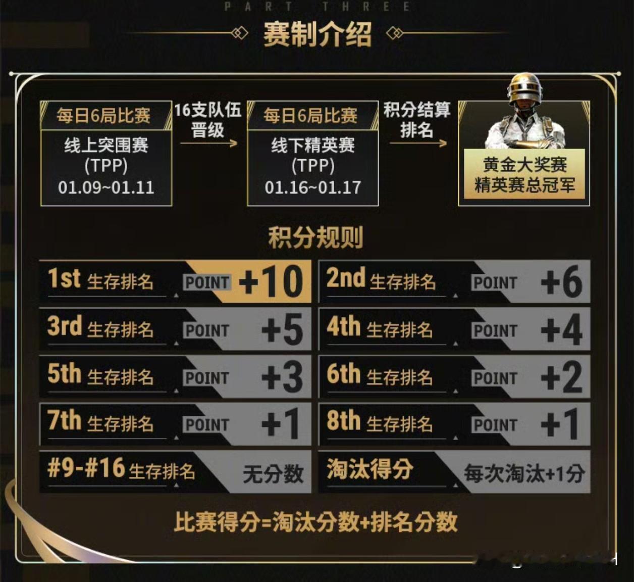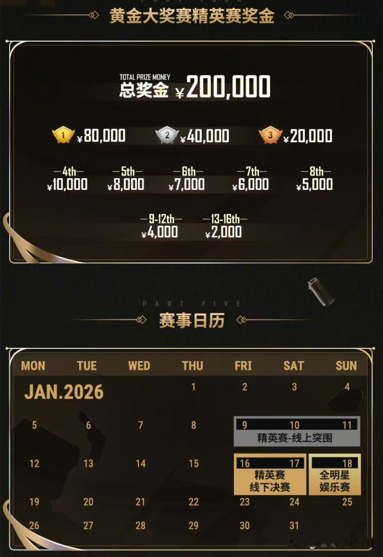 黄金大奖赛回归! 1月9号~11号,线上小组赛,24进16 1月16号~17号,线下总决赛,冠军诞生 本次黄金大奖赛参赛的都是国内的队伍,先线上再找下,感觉还是不错的比赛,有的队伍会是新阵容上场比赛,像17、JDG、PeRo等 4AM本次黄金大奖赛据说会继续试训太空人,可能会打个一两天,后面温蛋也会参加,感觉JDG买了Nanss,首发没有太空人的位置了,估计到最后4还是有机会的