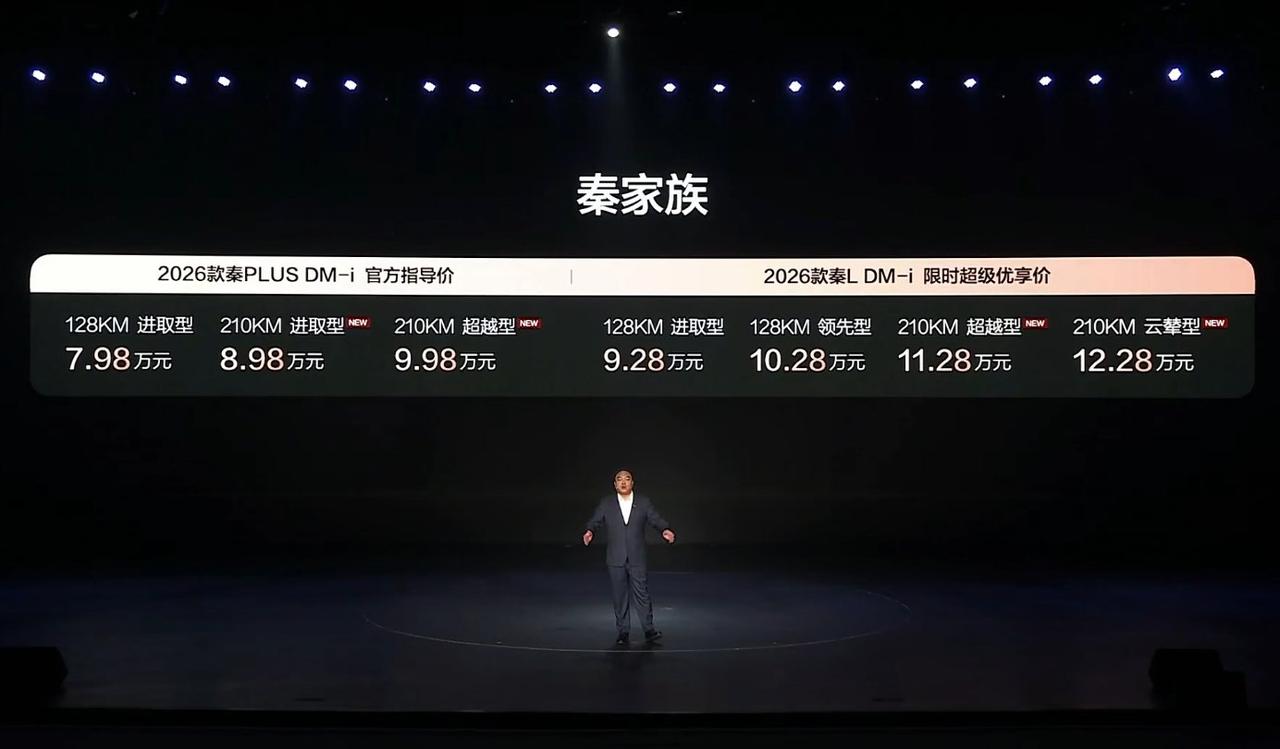 2026款比亚迪秦 PLUS DM-i 与秦 L DM-i 正式上市,价格区间7.98 万-12.28万元,结合配置与优惠,秦家族依然是家用车性价比首选车型。从安全和使用场景来看,秦 L DM-i 210KM 云辇型(12.28 万),让大家可以用中杯的价格卖到超大杯的享受,比如TBC 高速爆胎稳行系统(价值 3000 元,限时免费赠)的车型:该系统可在高速爆胎时稳定车身轨迹,大幅降低失控风险,是高速场景下的核心安全保障,尤其适合经常跑高速、对行车安全要求高的用户。若预算在 10 万内:秦 PLUS DM-i(7.98 万起)也能满足基础通勤,续航里程也能满足跨省出行,两款车均享松烟绿 / 墨竹青配色免费选(价值 3000 元)。【来自懂车帝车友圈】