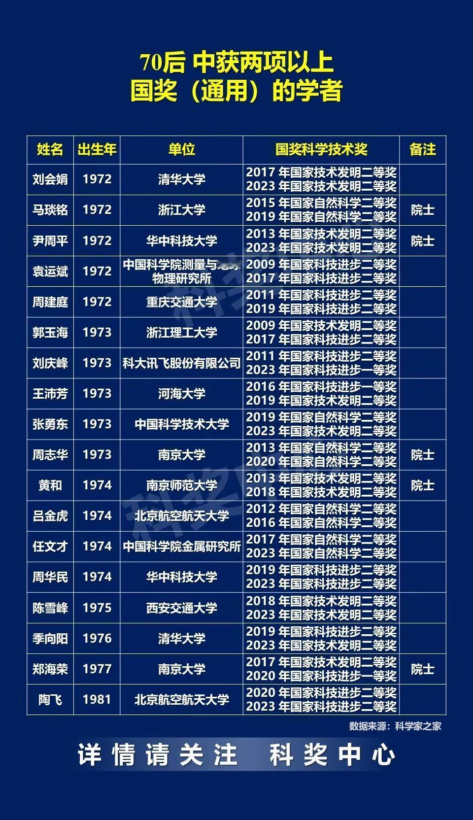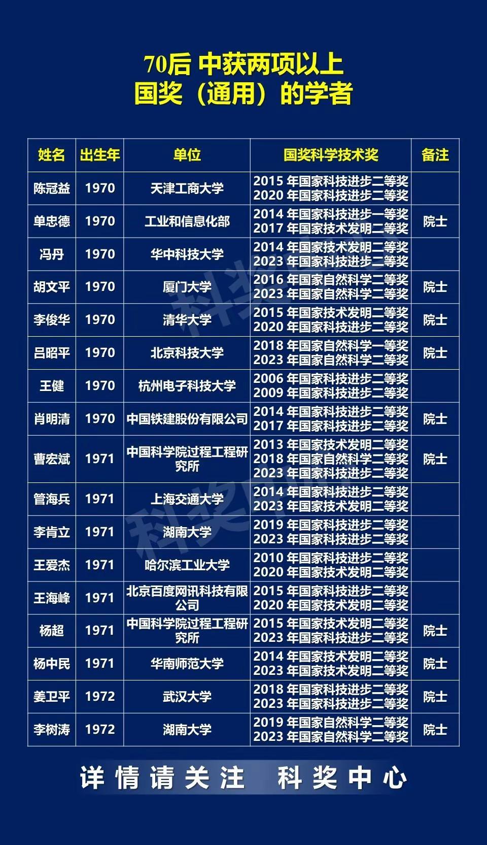 70后 中获两项以上国奖(通用)的学者。70后 中获两项以上国奖(通用)的学者国家奖通用项目 国家奖
