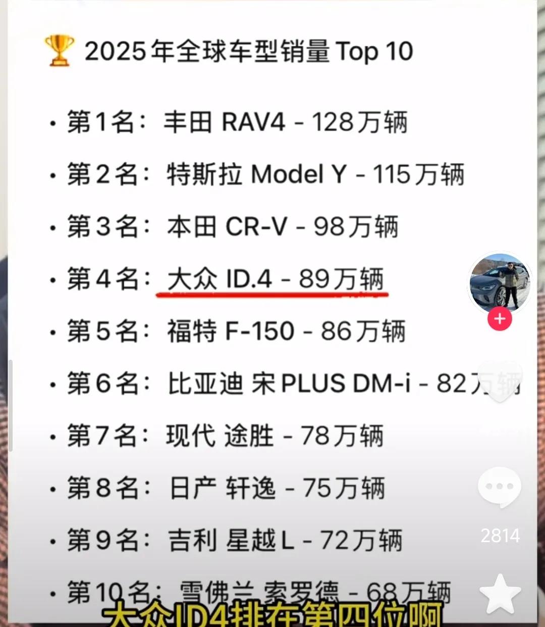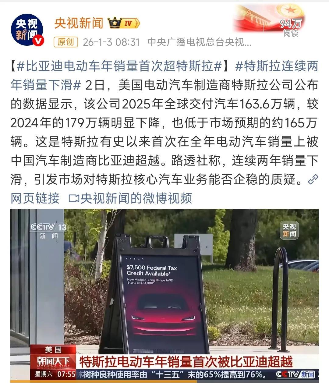 不出意外,比亚迪反超特斯拉成为2025年全球纯电销量第一!迪子卖了226万台,同比增长28%; 特斯拉全球164万台,同比下降8.6%,这是特斯拉连续第二年销量下滑。 有一说一,迪子这个销冠是靠车海战术拿下的,也就是说11款车型贡献了226万台的销量; 而特斯拉仅Model 3/Y两款主力就卖了164万台,而且常年不迭代,最便宜的model3也是23万起步,确实牛逼。 再比如,modelY2025年全球销量115万辆,连续第三年登顶全球单一车型销量冠军,这可是售价26~32万区间的高端价位。相比之下,迪子销量最高的单一车型是是海鸥,售价8.28万(顶配)全年销量529,537辆。 迪子净利润(2024年)是402亿人民币,特斯拉(2024年)是71亿美元,相当于490亿人民币,比你卖的少,但比你赚的多,论赚钱能力,马斯克还是更胜一筹。 大家怎么看?