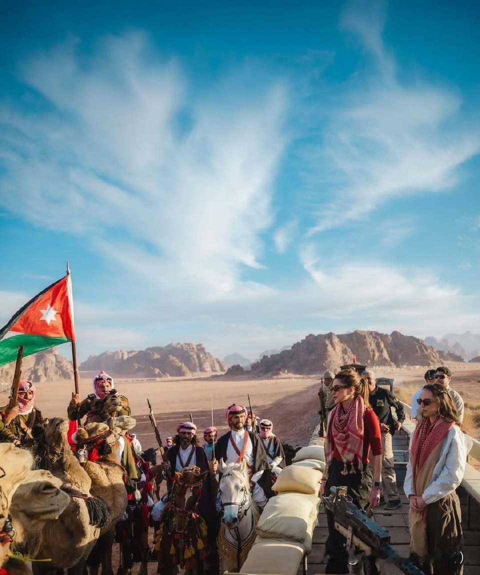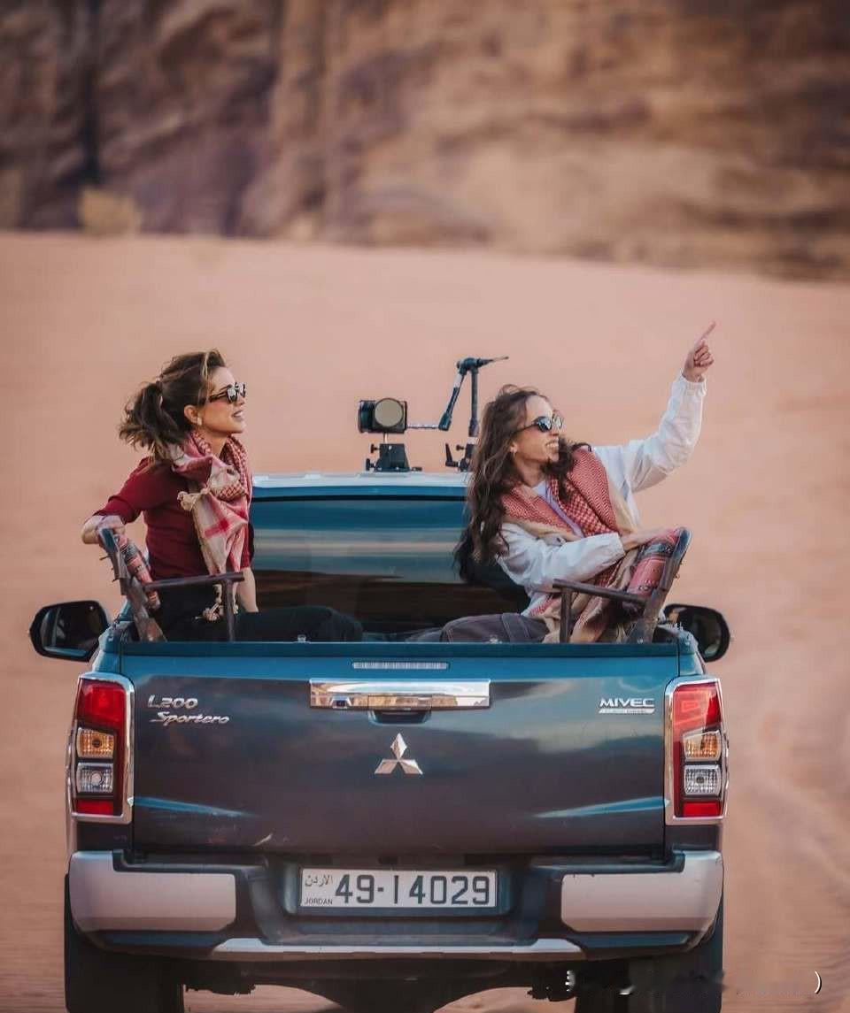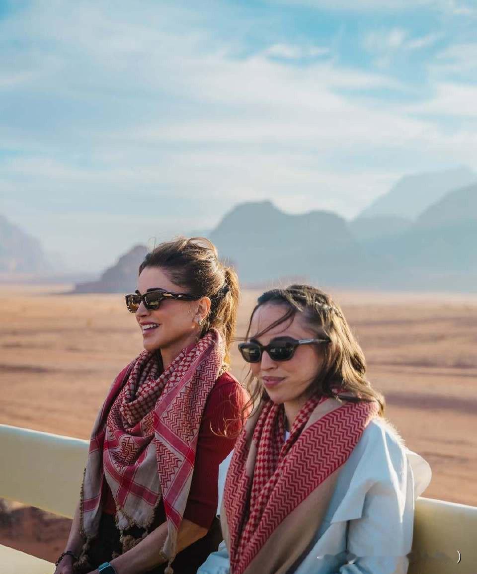 拉尼亚王后和女儿萨尔玛公主参观位于约旦的世界自然与文化混合遗产瓦迪拉姆!母女合体非常养眼,王后保养的也太好了,母女俩像极了姐妹花!