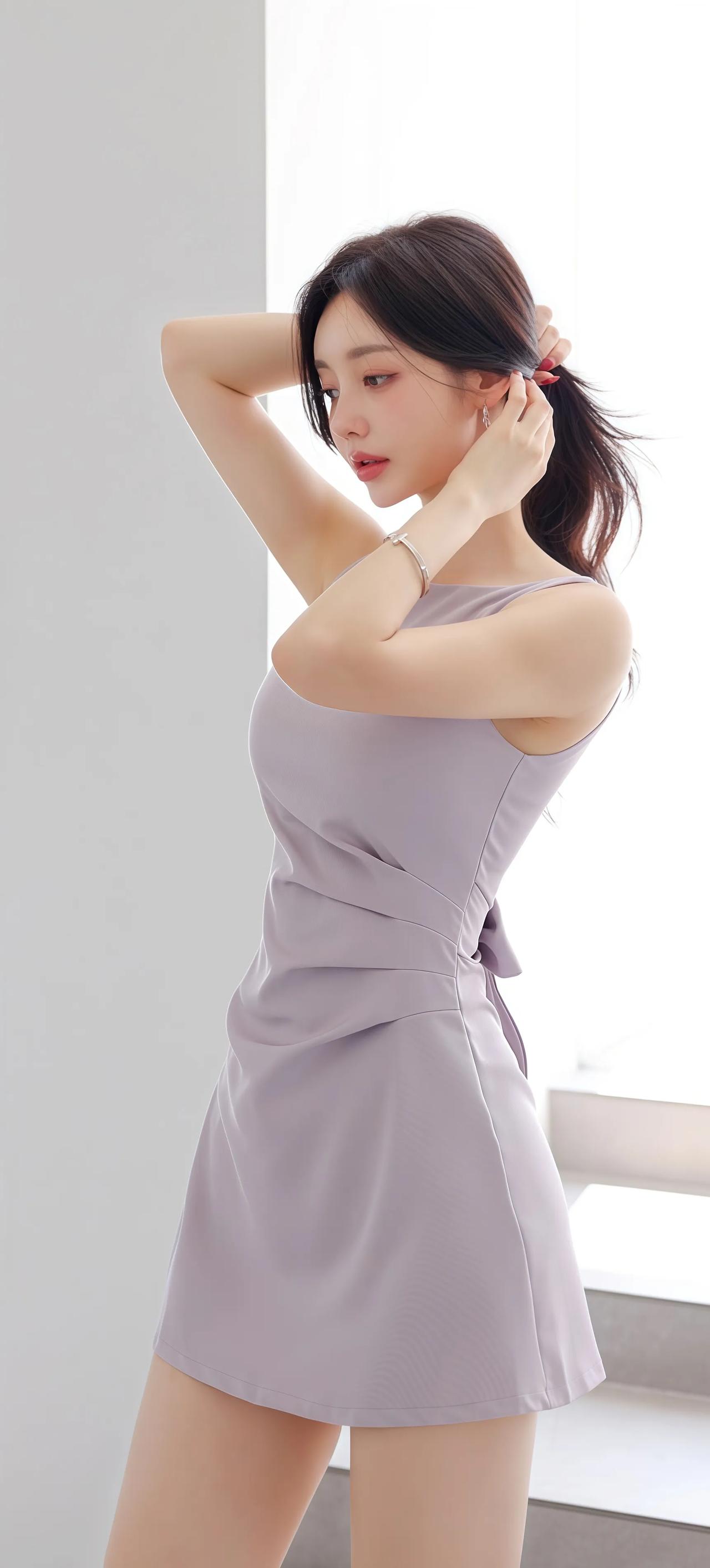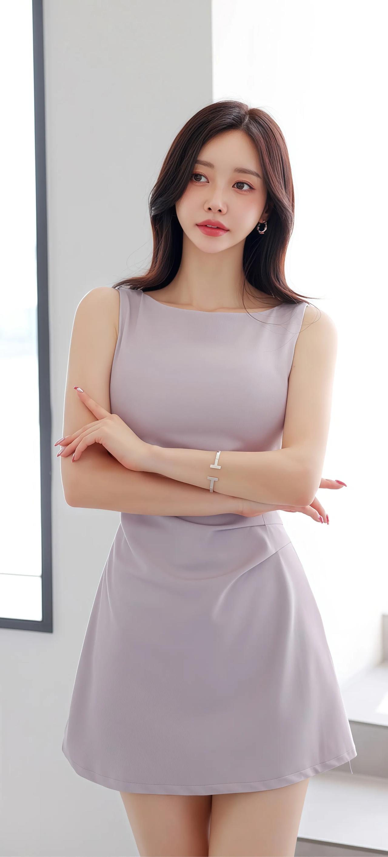 优雅气质穿搭,浅紫色连衣裙搭配白色高跟鞋,简约时尚。