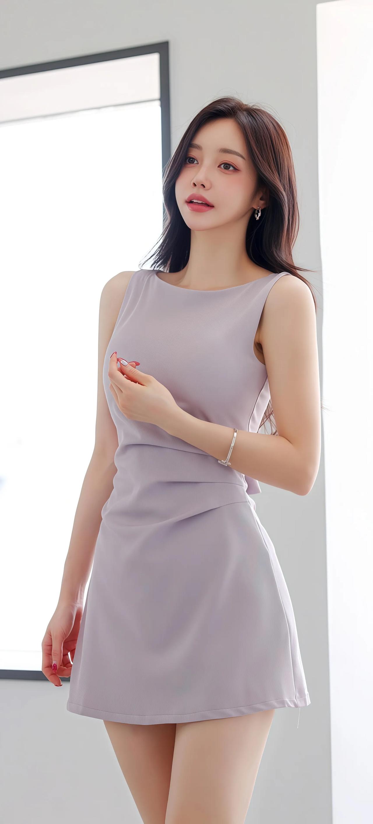 优雅气质,浅灰色连衣裙,清新脱俗,尽显女性魅力。