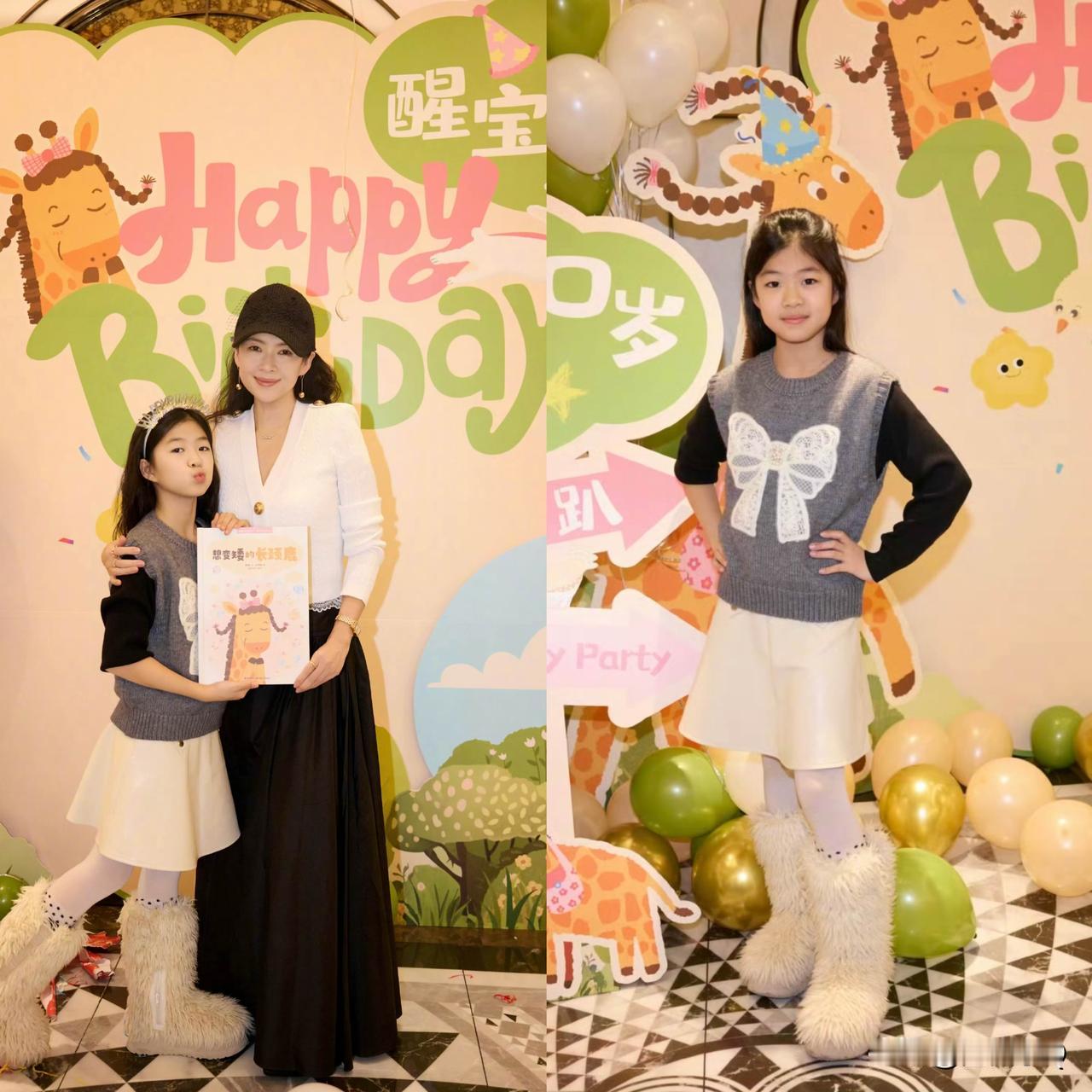 章子怡和醒醒的毛毛靴还是母女款的,看起来好暖和的样子。