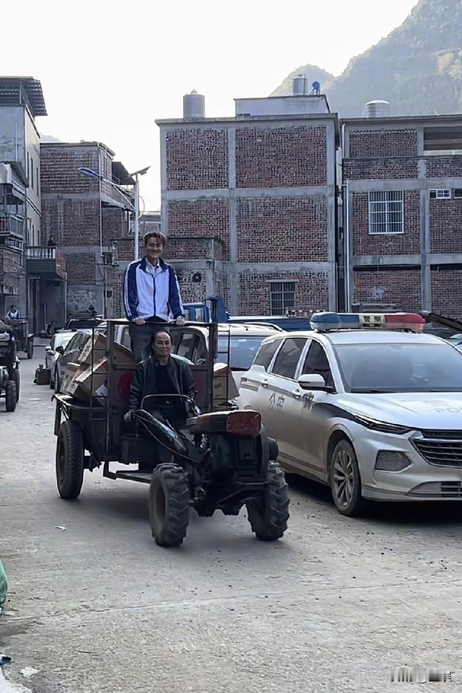 在乡间小路上,吴克群开启了一场别样的乡村之旅~他站在拖拉机的车斗里,和驾驶拖拉机的老乡一同穿梭在村落街道中,周围是停放的车辆与质朴的砖房,这样接地气的画面,仿佛让我们看到了他对乡村生活的好奇与融入,也让大家感受到他和村民之间亲切的互动,不知道这次进村,他又会带来怎样的故事和惊喜呢