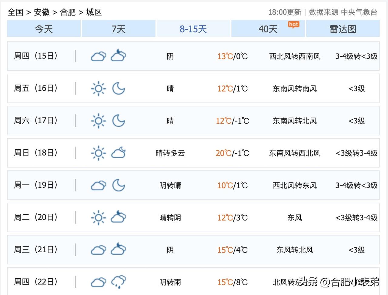 未来一周安徽全省主打晴到多云,气温还会波动回升。14日前后南部最高温逼近20℃,合肥当天最高温也能冲到18℃,这“三九”天暖和得也太不寻常了。 气象台15天预报更狠,1月18日合肥最高温直接飙到20℃!家里还开着暖气的小伙伴,这波到底是关还是不关?这天气也太怪了吧[闭嘴]!