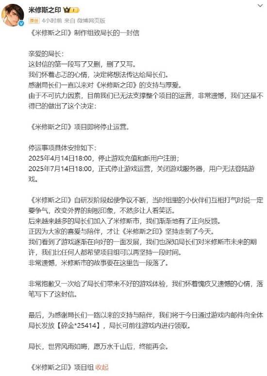 仅2025年,已有《白夜极光》《归龙潮》《雾境序列》《行界》等超20款二次元游戏停更或关服。新游戏的生存窗口正被急剧压缩:《米修斯之印》运营271天,《黄金四目》仅维持158天。市场仿佛开启了一场无声的“缩圈”——安全区正持续收缩,资源加速向头部集中,后来者必须在更短的时间内证明自己的生存价值。