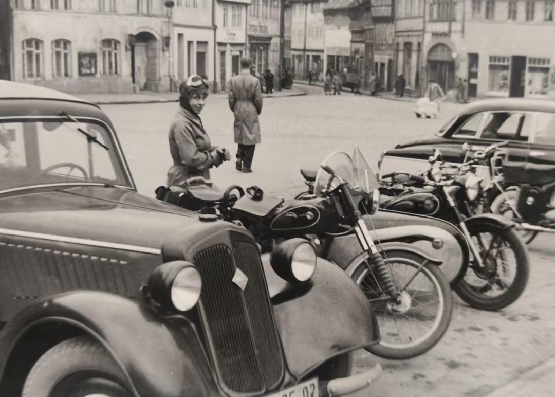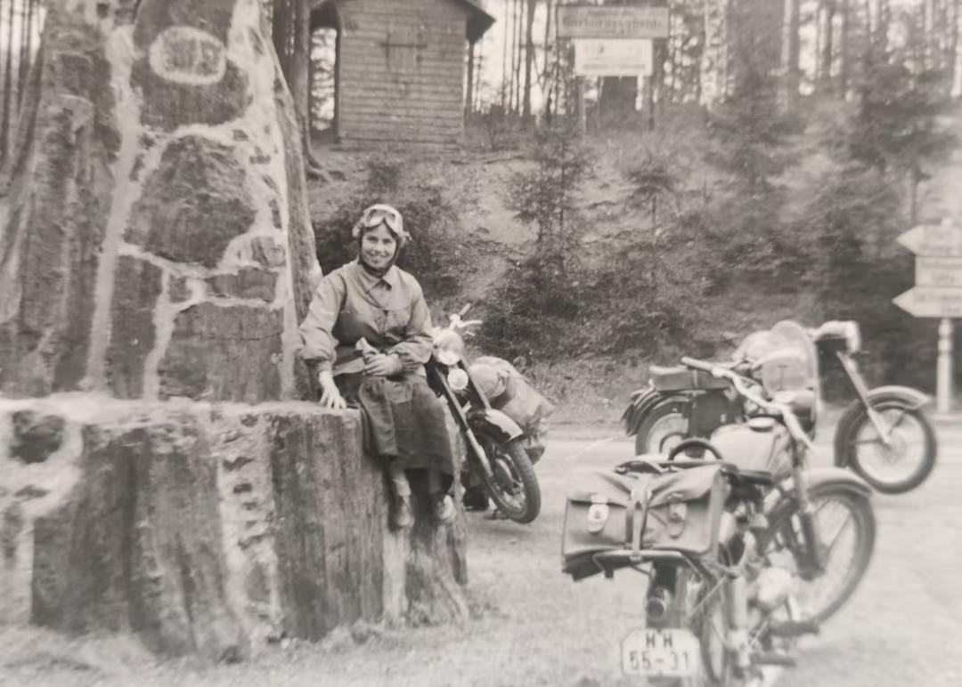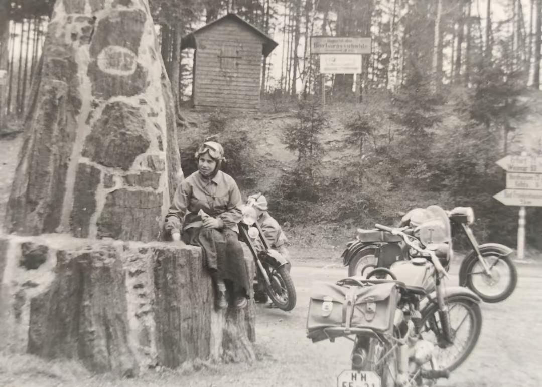 东德警察的蜜月旅行(1) 劳奇莫尔夫妻旅行到基夫豪瑟,在城堡里的德皇威廉一世纪念碑前拱门合影苏联 德国 东德 东德军服 老照片 德意志 历史的印记