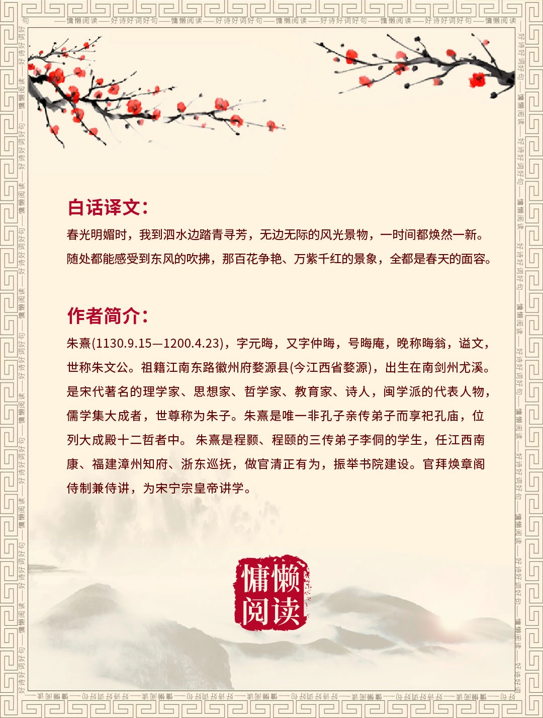 古诗词 诗词 古诗词赏析 诗词里的春天 诗歌鉴赏 让孩子爱上古诗词 唐诗宋词 经典诵读 每日古诗打卡 朱熹
